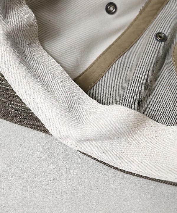 内側のスベリ部分には、コットンの杉綾テープを使用しており、肌あたりが柔らかく、かぶり心地にもこだわりました。季節を問わず、どんなスタイルにも自然に溶け込むひとつです。