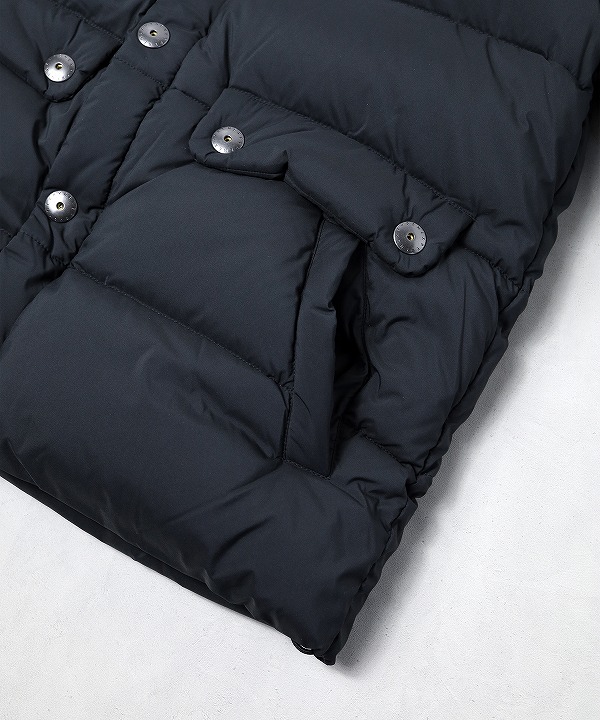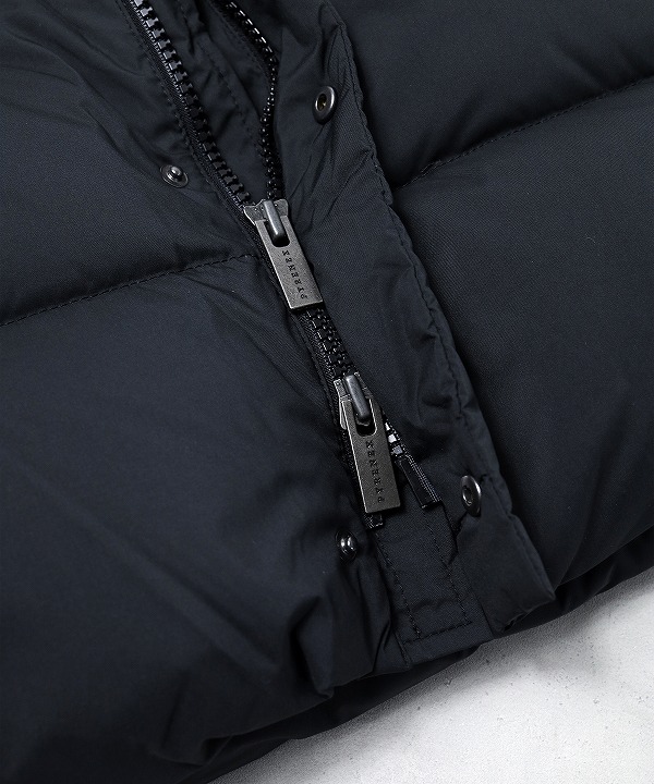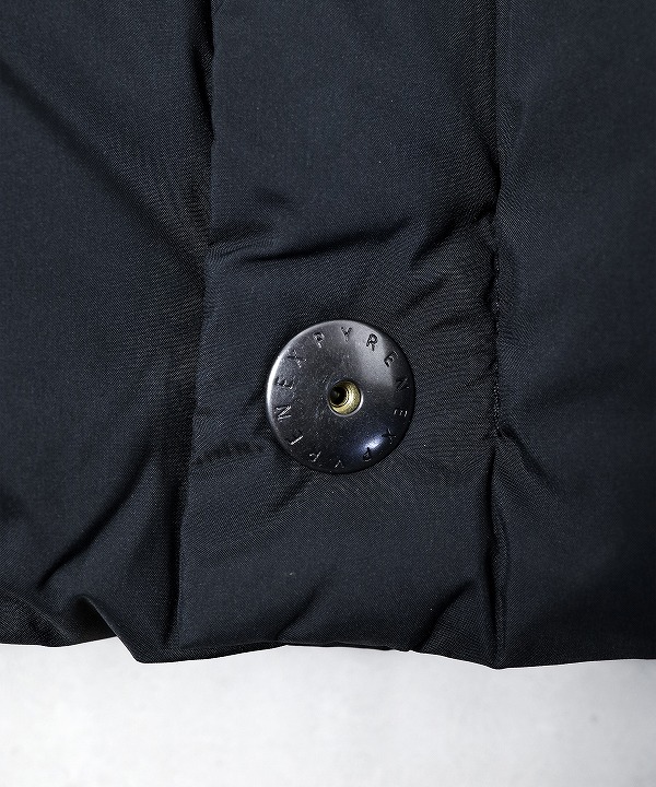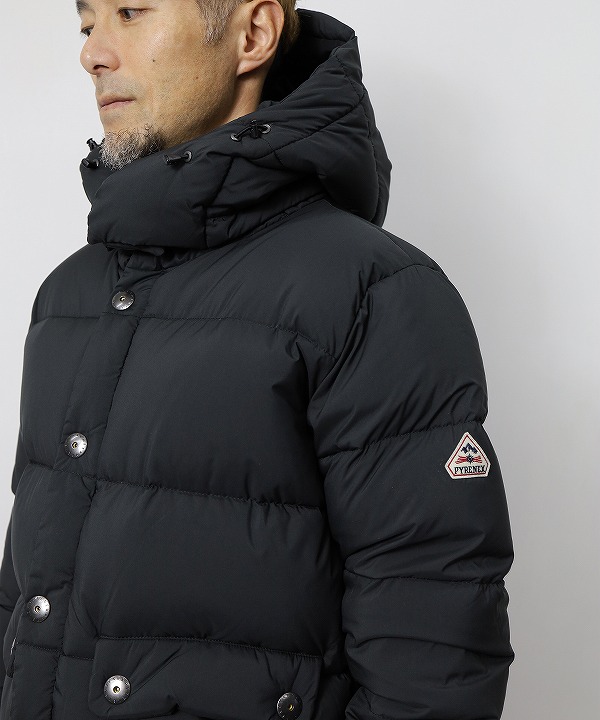 日本の気候に合わせたダウン量に調整することでロングシーズンでの着用が可能です。フロントは上下から開閉ができるダブルジップ仕様によりスタイリングの幅を持たせており、ピレネックスのロゴが刻印されたラージサイズのメタルドットボタンがデザインのポイントとなっています。