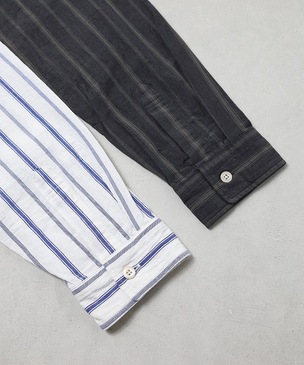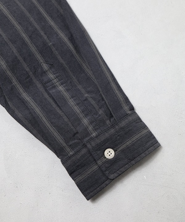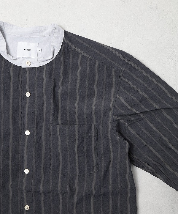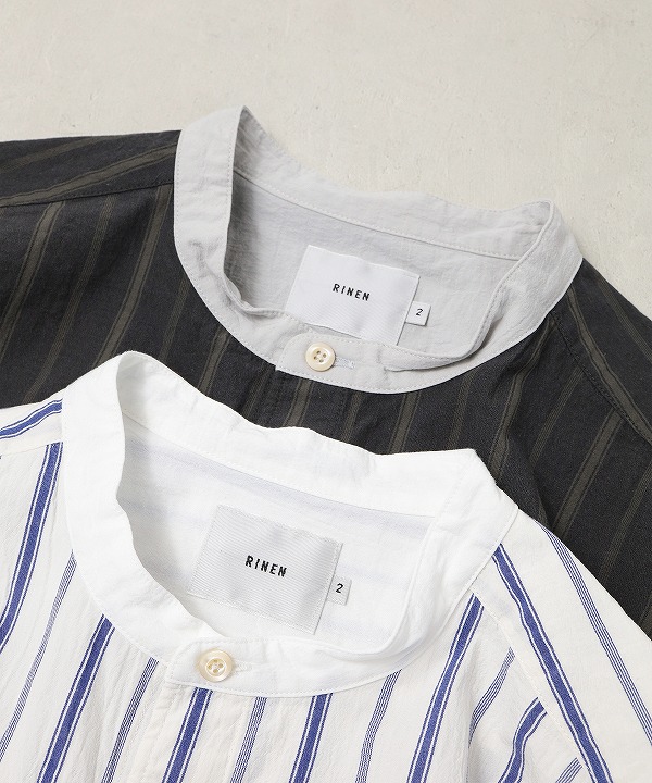 着丈をやや長めにとったスタンドカラーシャツです。