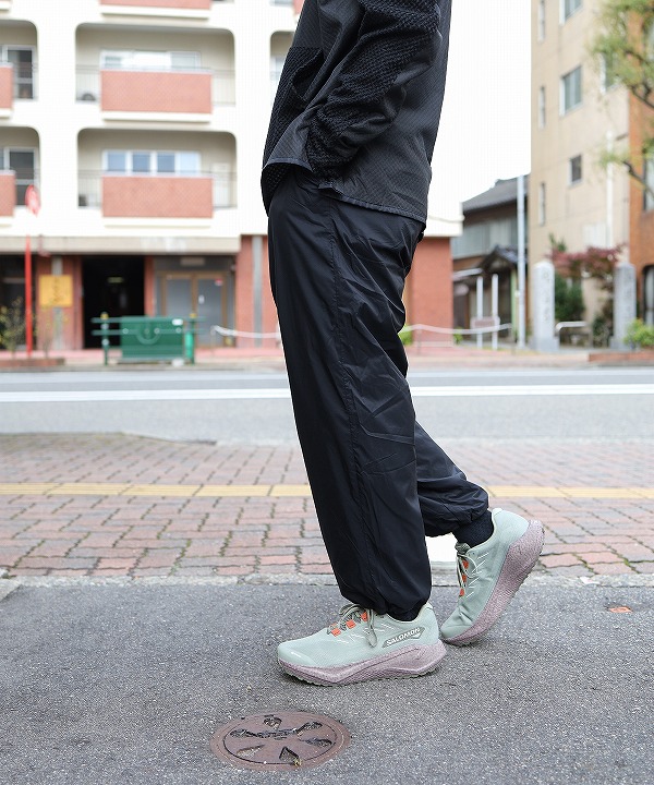 ランニングパンツでは見かけないアパレルライクなストンと落ちるシルエット、裾にはドローコードで様々なシルエットにも対応。