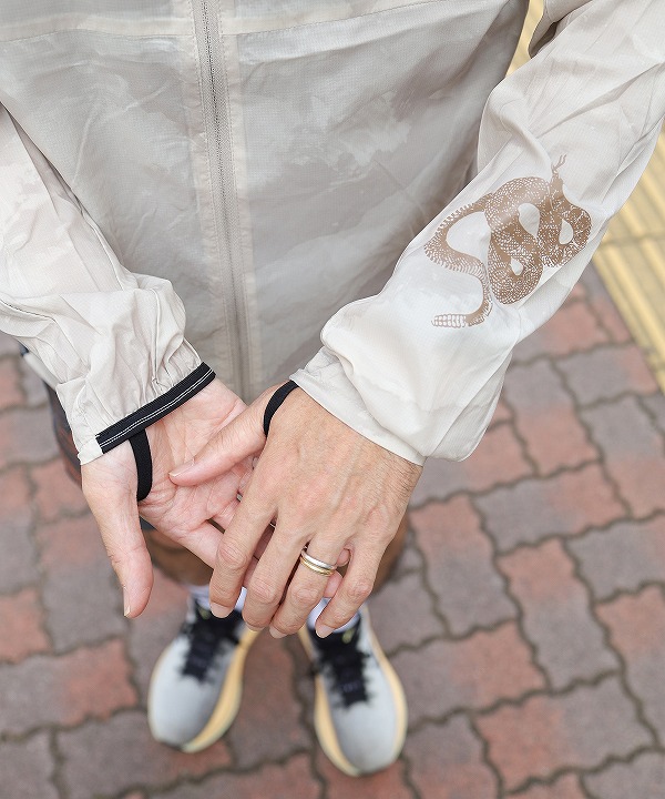 首元までしっかり覆うことのできるフロントZIP、袖口のループ紐、伸縮性のあるフードは体へのフィット性能を高め、風が強い時や防寒に役立ちます。