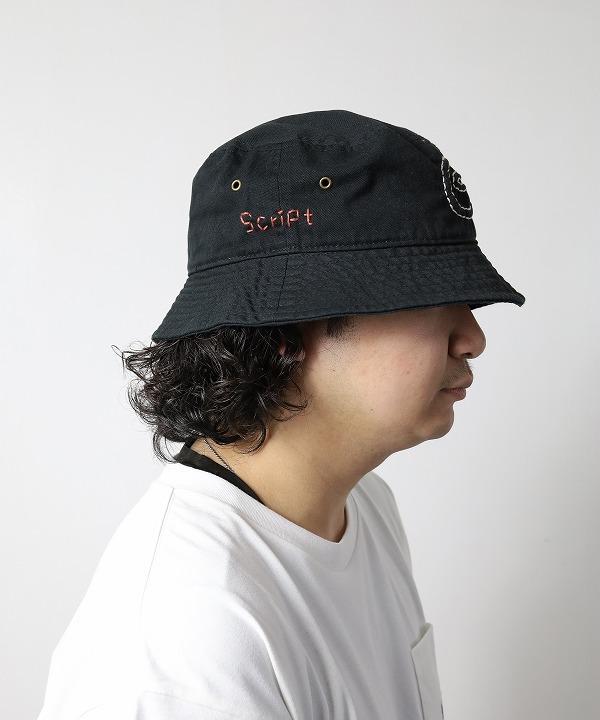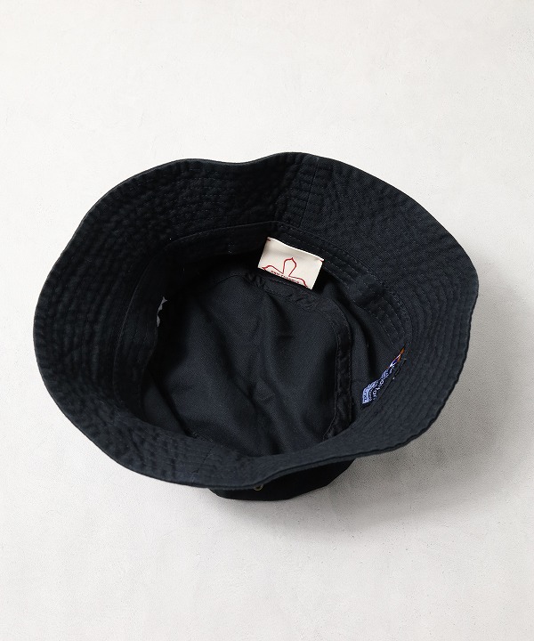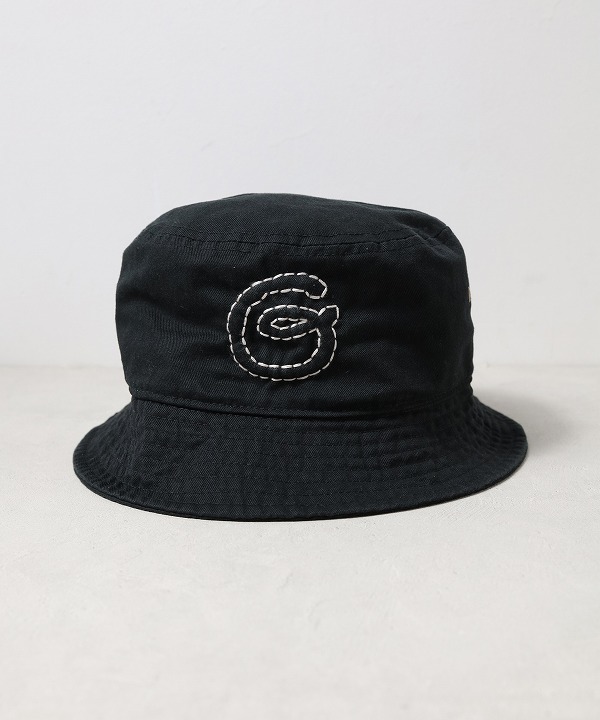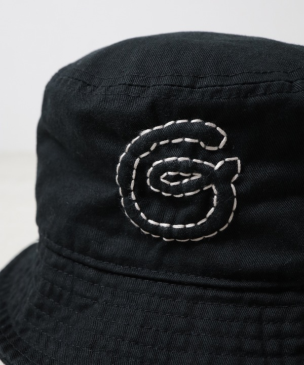 グレーのバゲットハットにGのロゴとサイドにのステッチを