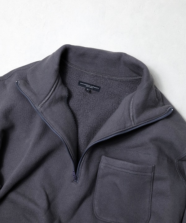 スタンドカラーにジップフロント仕様のプルオーバーシャツ。