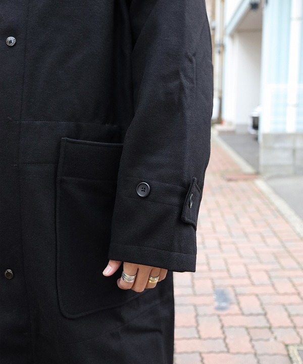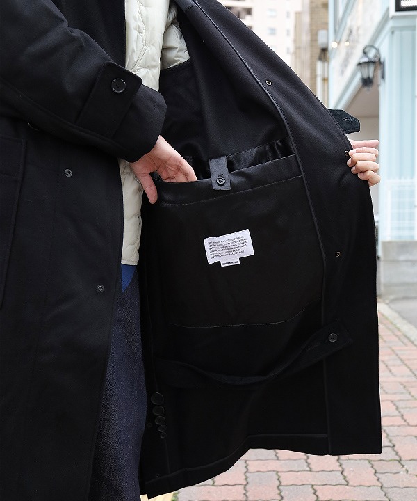 素材には24オンスのメルトンを使用し、重厚感ある雰囲気を演出します。