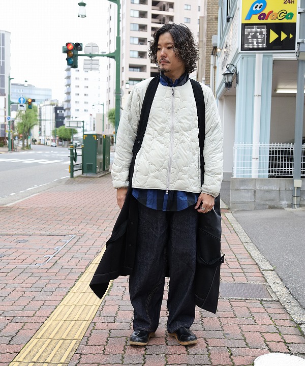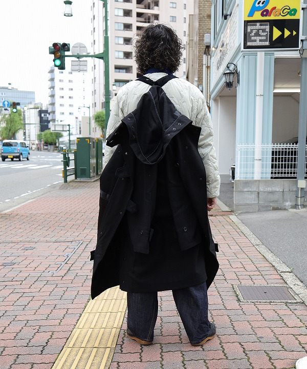 フロントはループボタン+スナップボタンが独特の配置で施されたブランドらしさ全開のデザイン。