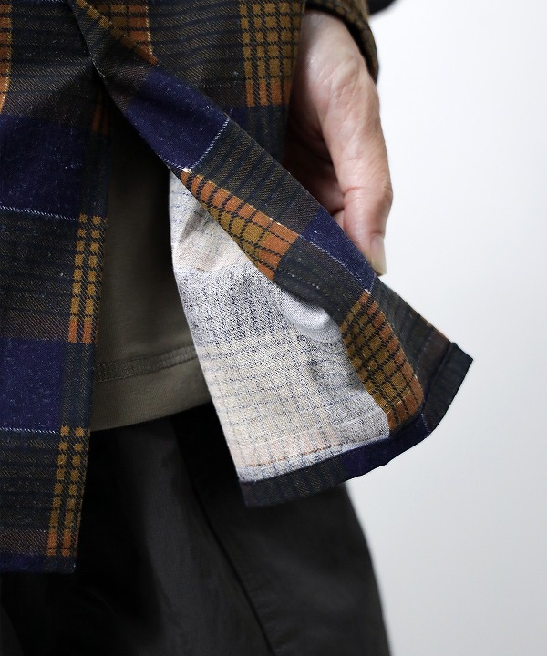 シルエットはゆったりとしたボックス型になっておりシャツジャケット感覚でも羽織れます。