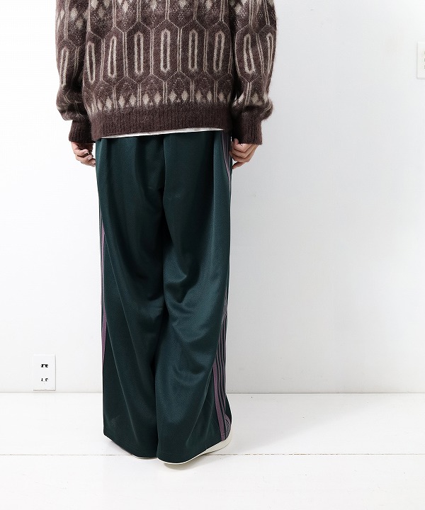 NEEDLES〉定番のトラックパンツが25年秋冬シーズンの新色で登場。伸縮性や通気性に富んだポリエステルジャージー素材を使用した快適性に優れたアイテム。独特の配色や刺繍デザインなど、一般的なスポーツウェアとは一線を画した華やかなファッション性が魅力となっています。トラックパンツと並び人気の高い〈NEEDLES〉の定番ボトムス、H.D. PANTのシルエットを落とし込んだ個性的な一本です。