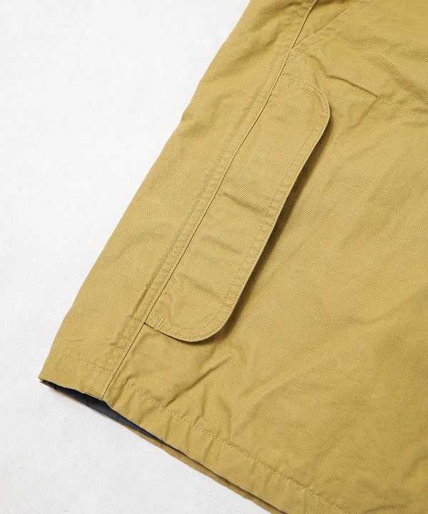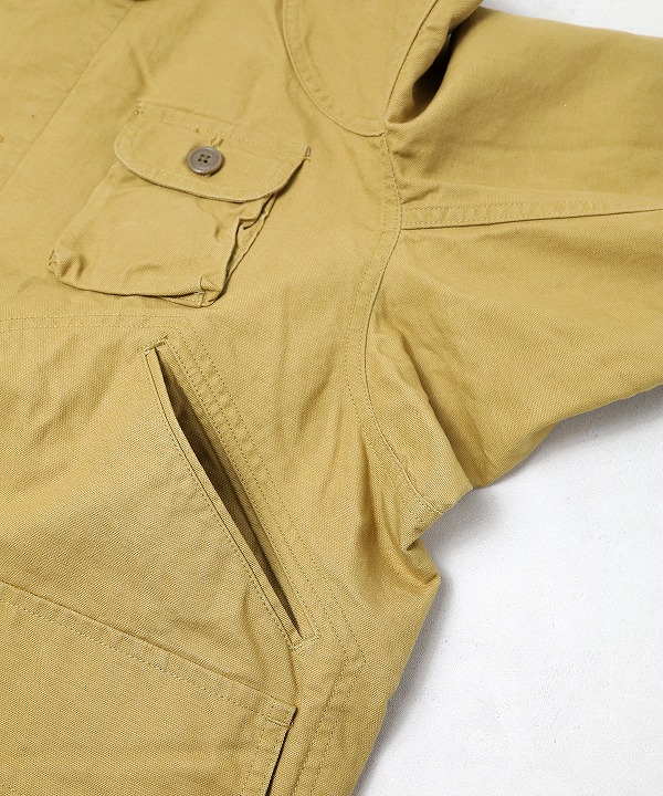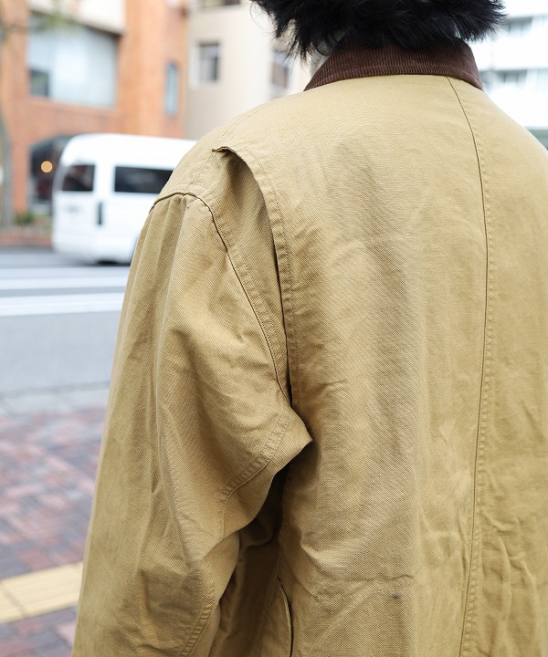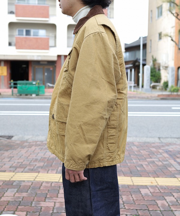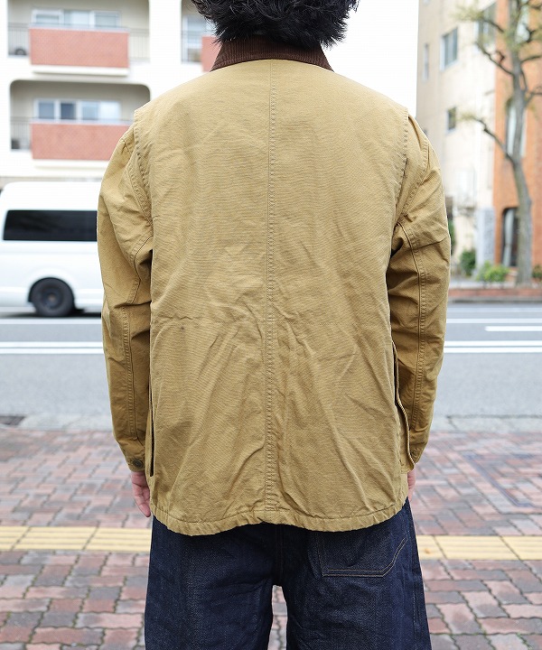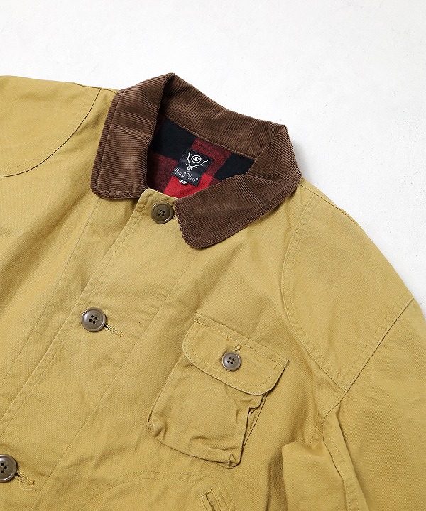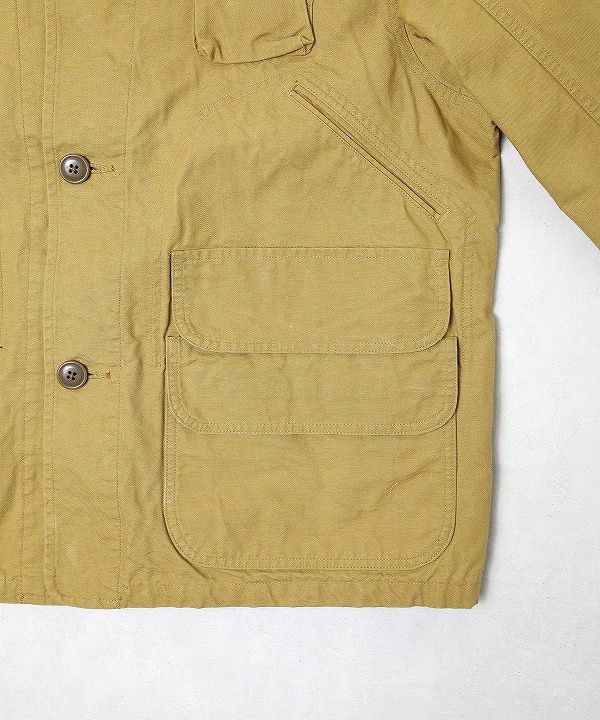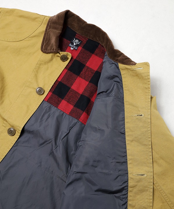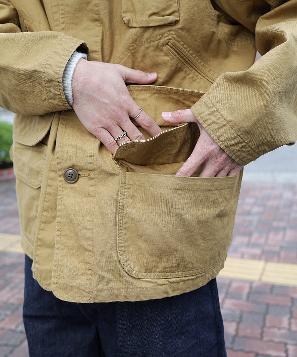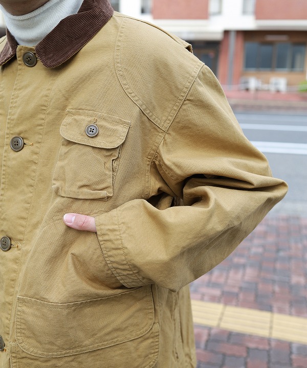 左右縦に2つ並んだフラップポケットやゲームポケット、コーデュロイ襟や裏のバファローチェックなどクラシカルな要素満載の仕上がりに。