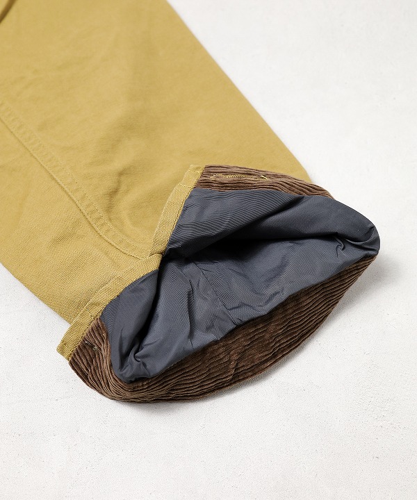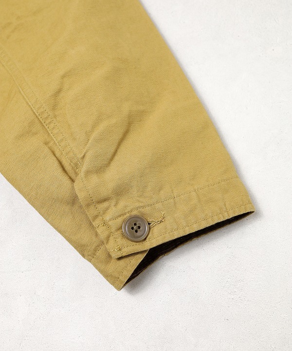表地はパラフィンコーティングを施し、撥水性を持たせたオックスフォード素材を採用。ハリ感のある丈夫な生地はタフな雰囲気で、着用を重ねるほど風合いが増し経年変化も楽しめます。