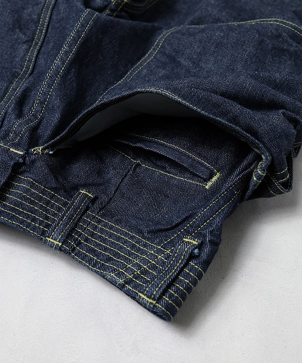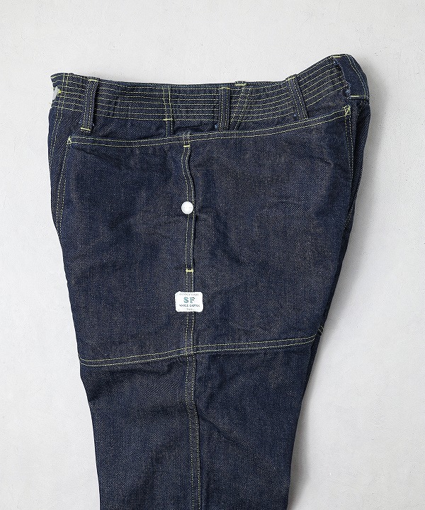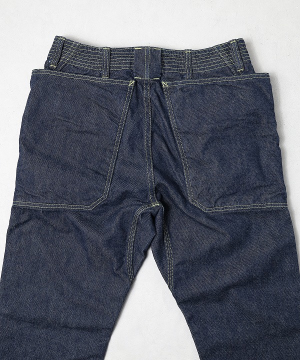 トリプルステッチやフロントはボタンフライ、ウエスト周りの補強ステッチ、股下のガゼットが特徴。