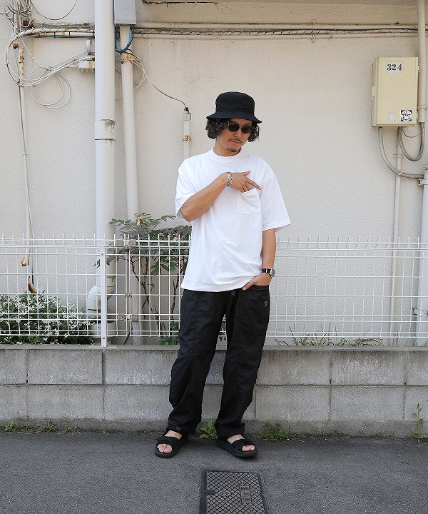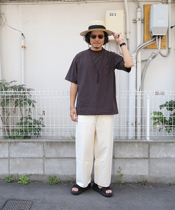Black Bleach、Brown Pigmentモデル170cm、56kgがサイズ「M」を着用。Purple Bleachはモデル176cm、66kgがサイズ「L」を着用。Navy Pigmentはモデル176cm、66kgがサイズ「XL」を着用しております。