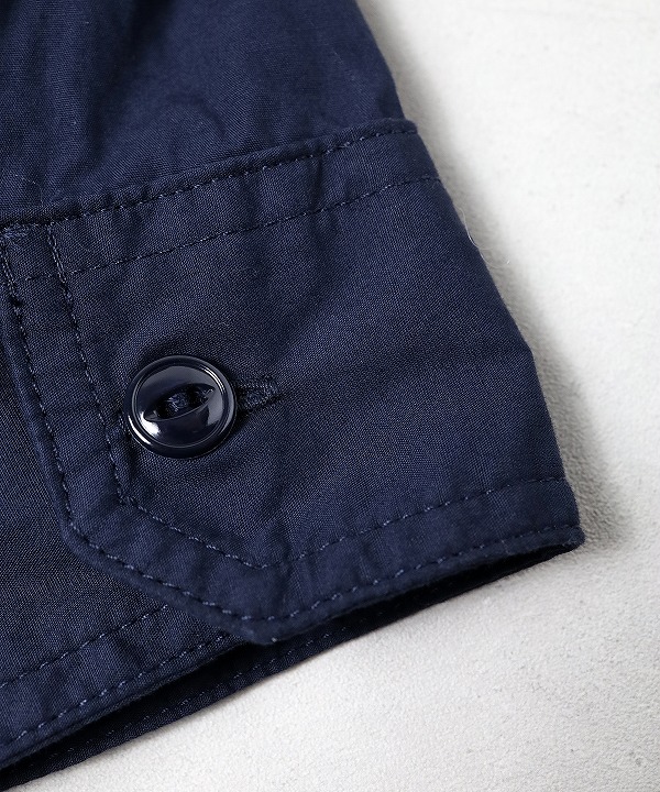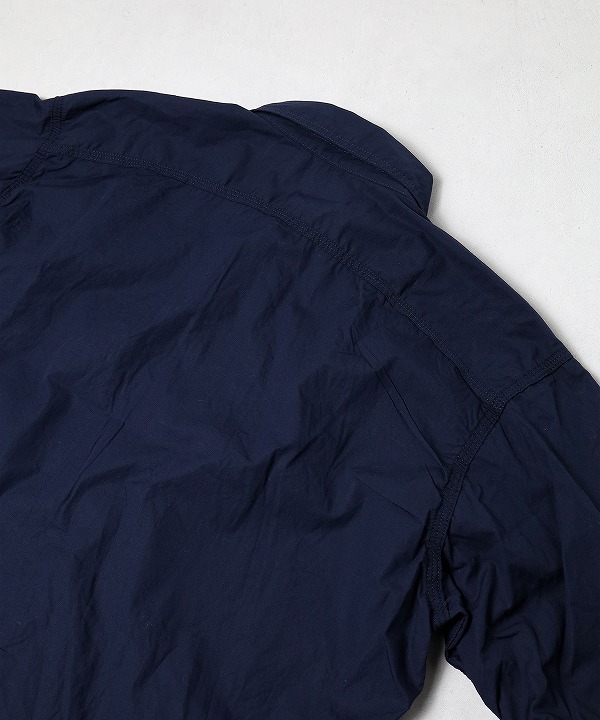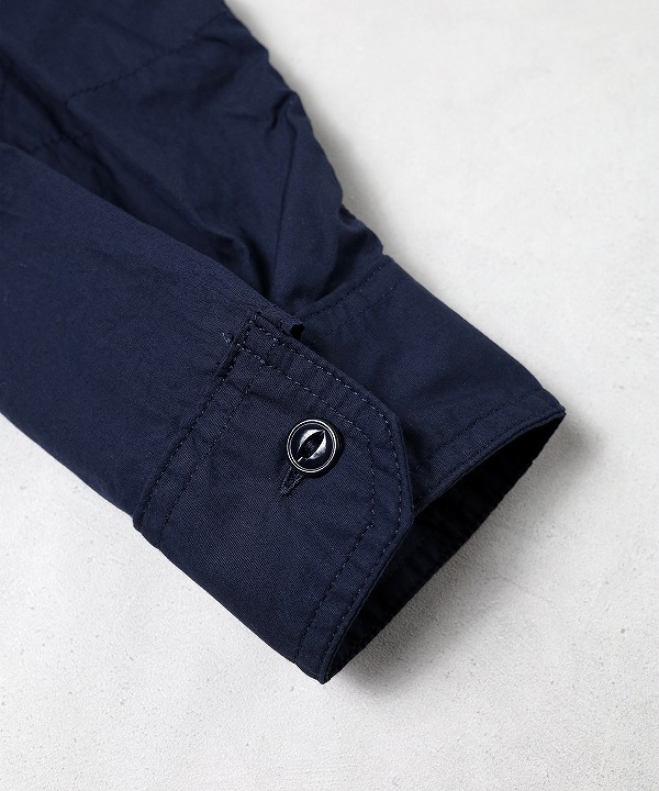 生地は目の細かくほんのり光沢感を纏ったコットンブロードクロスを使用。軽やかな着心地とワークシャツながら上品な一面も見せてくれる一枚です。