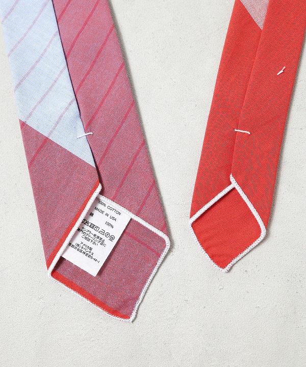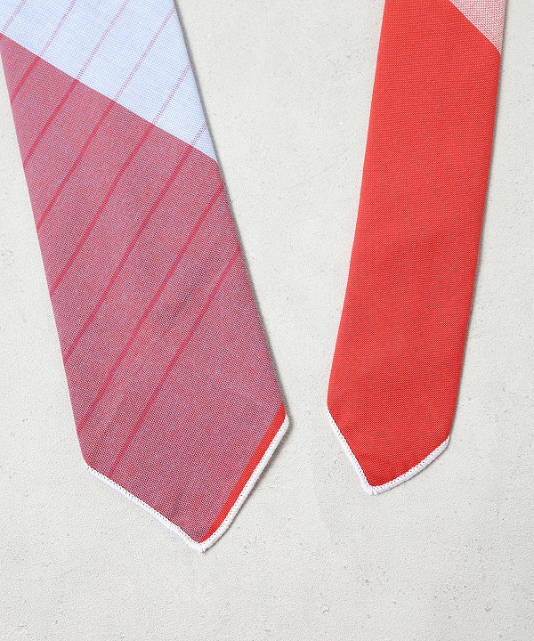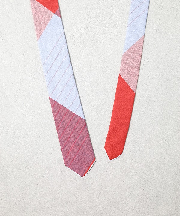 毎シーズン、コレクションのファブリックを使用して制作されるネクタイ。今シーズンは細身のシルエットが特徴のナロータイが登場。あえて洗いをかけることでカジュアルな雰囲気が漂います。