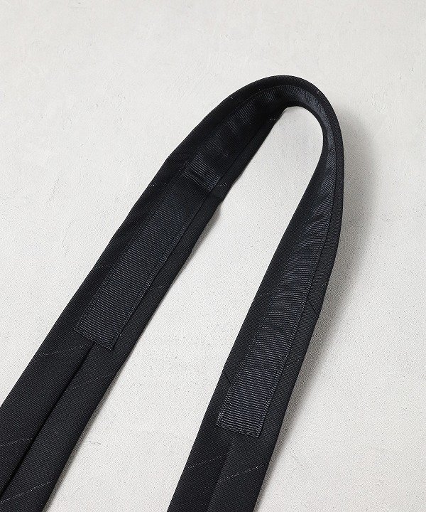 毎シーズン、コレクションのファブリックを使用して制作されるネクタイ。今シーズンは細身のシルエットが特徴のナロータイが登場。あえて洗いをかけることでカジュアルな雰囲気が漂います。