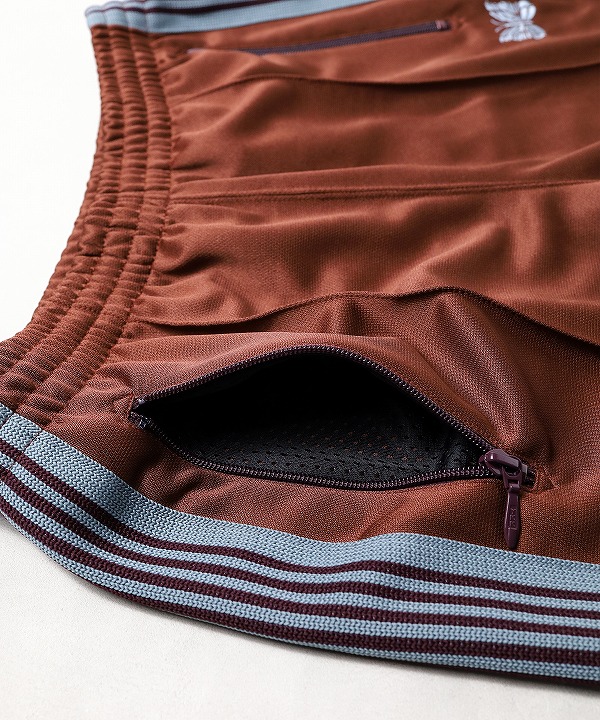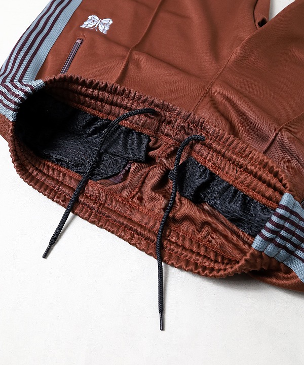 素材やカラーリングをマイナーチェンジしながら、毎シーズン展開されるトラックパンツ。光沢感がありアクティブな動きに対応するジャージー素材を使用し、程よくルーズなリラックスしたストレートシルエットでボリュームのあるブーツとも相性抜群。両側を走る太めのラインと、アイコンである蝶が刺繍で施された、シンプルながらニードルズらしさを感じることができる一本です。セットアップでの着用はもちろん、様々なアイテムと組み合わせスポーティーさと遊びをコーディネイトに与えてくれます。ラインとアイコンである蝶が刺繍。シンプルながらニードルズらしさを感じさせてくれる一本です。