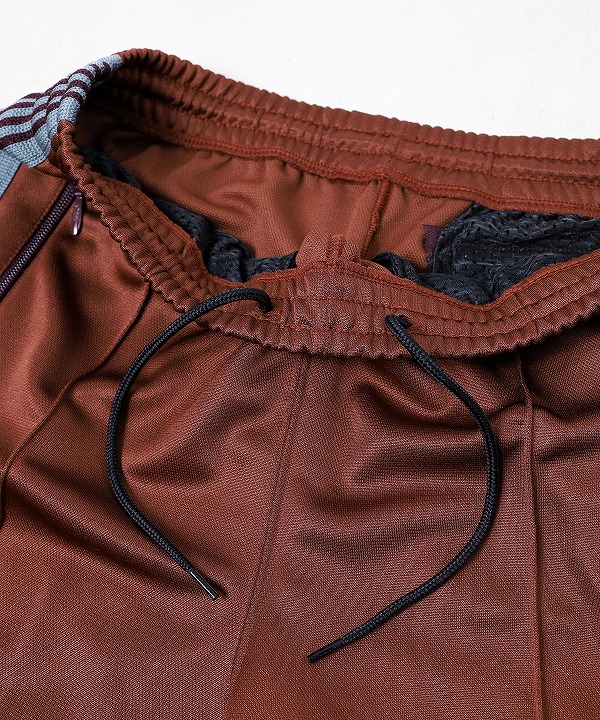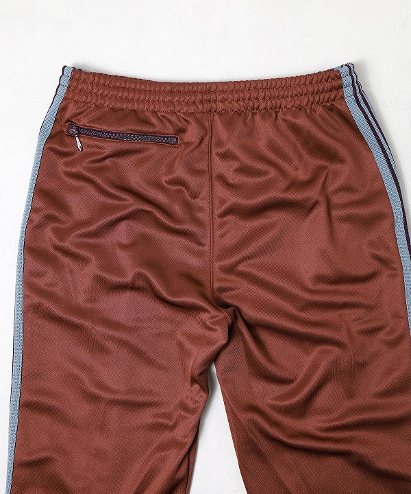 光沢感がありアクティブな動きに対応するジャージー素材を使用し、両側を走る太めのラインとアイコンである蝶刺繍がポイント。シンプルながらニードルズらしさを感じさせてくれる一本です。