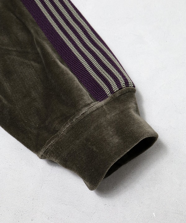 定番のポリエステルジャージー素材と並んで人気の高い、ベロア素材を使用したトラックシリーズ。