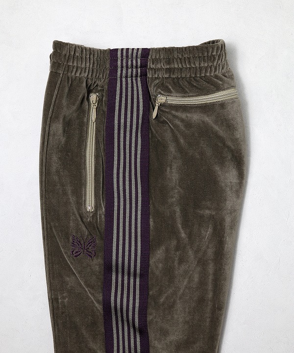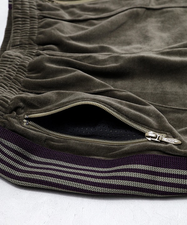 定番のポリエステルジャージー素材と並んで人気の高い、ベロア素材を使用したナロートラックパンツ。艶感のあるソフトな発色とナロータイプのシルエットが、スタイリッシュなイメージを強調します。