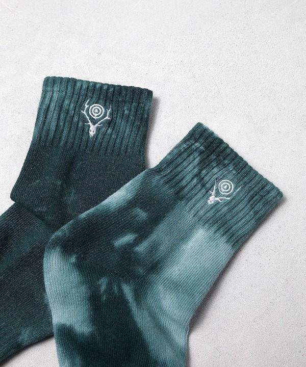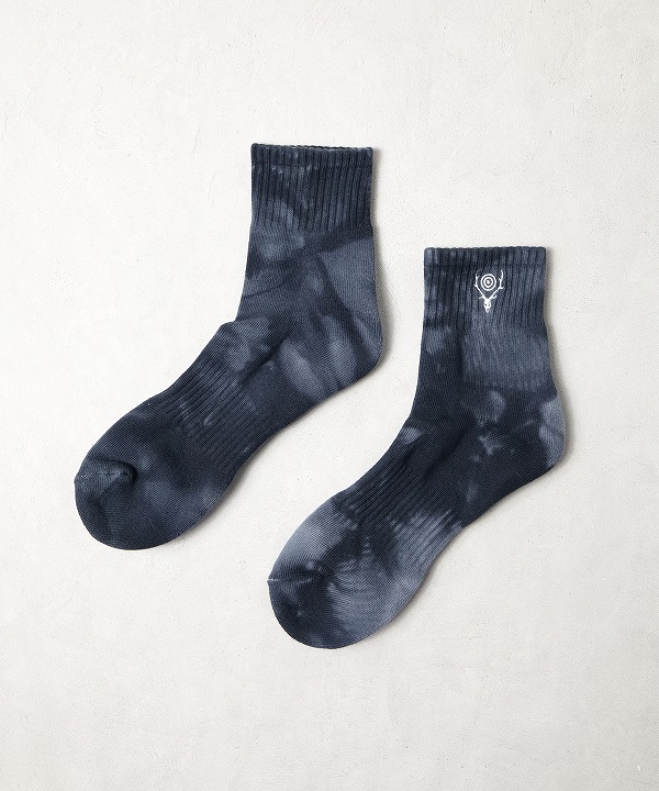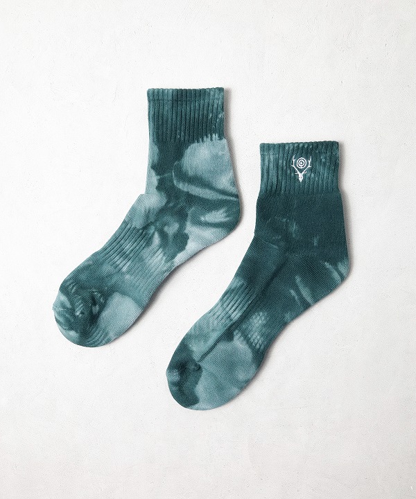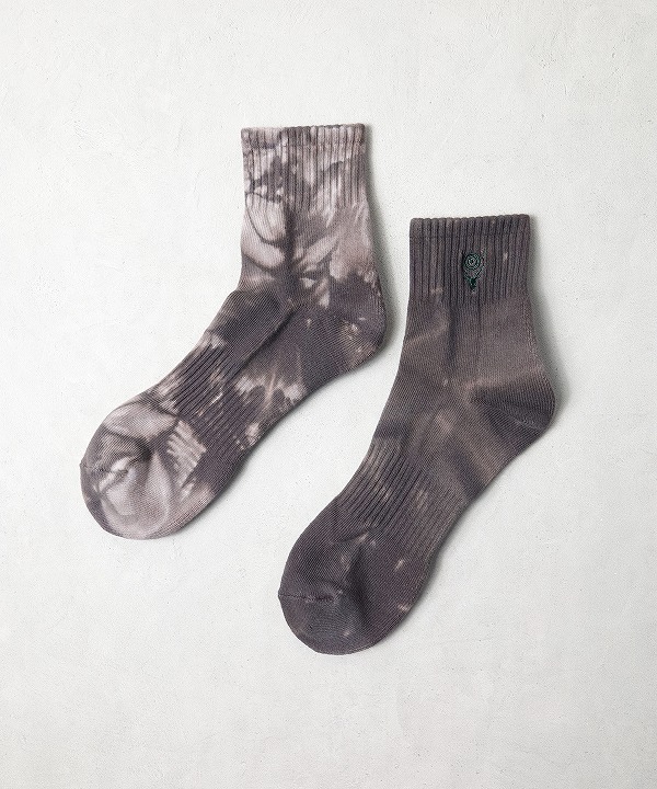 タイダイ染め&刺繍を施したくるぶし丈ソックス。