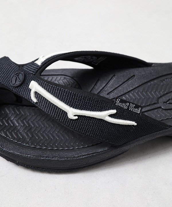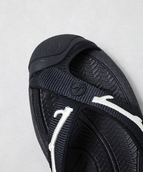 足裏の形状に沿って設計された立体的なフットベットが高いフィット感を生み、軽量で安定性に優れた “EVA” ミッドソールが歩行時の衝撃を吸収してサポート。シンプルな構造ながら快適性を兼ね揃えたモデルです。トング部分にはシンボリックな “ディアホーン”(鹿の角)のモチーフを刺繍で施したコラボレーションならではのディテールをプラス。