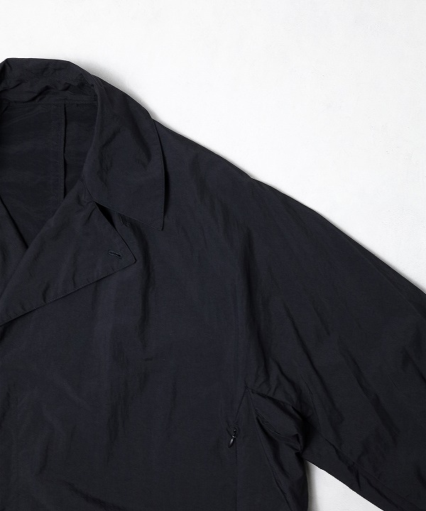 ボリュームのあるAラインや迫力のある大きめの襟、そして最大容量、収納力を誇るオーバーシルエットのコート「Device Coat」。