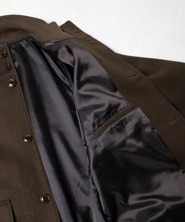素材はスーパー140'Sのオーストラリアウールにラムウールをブレンドした、しなやかさと軽さを重視したミドルウェイトのメルトン地の総裏仕立て。