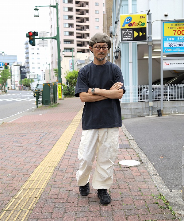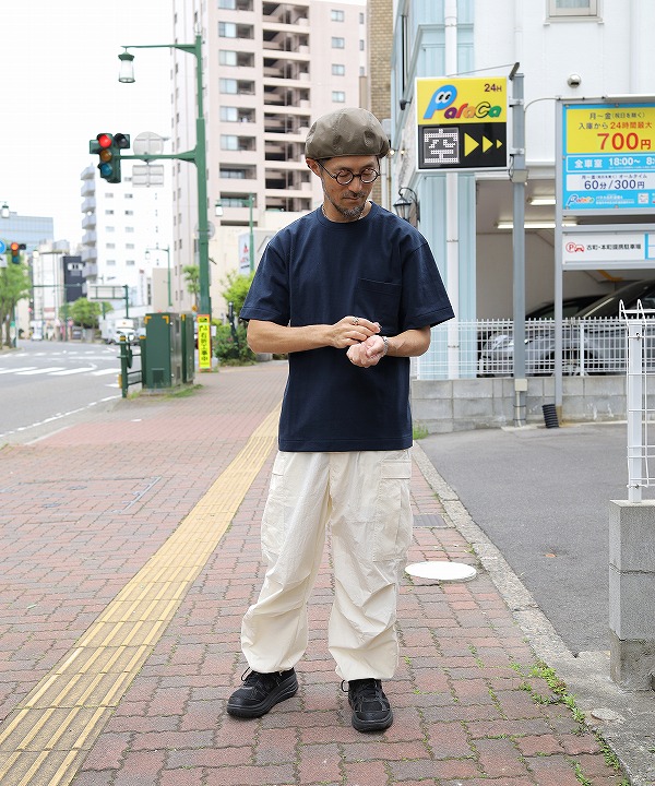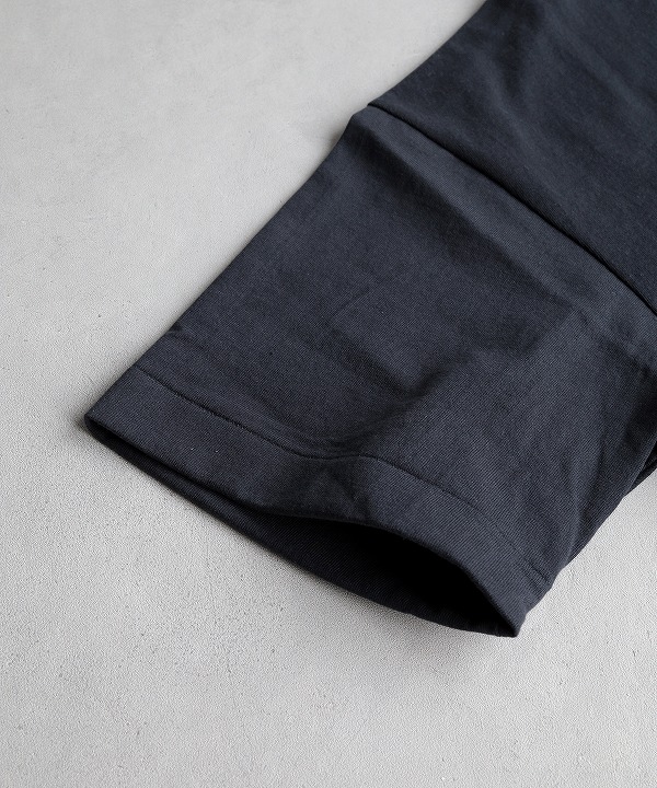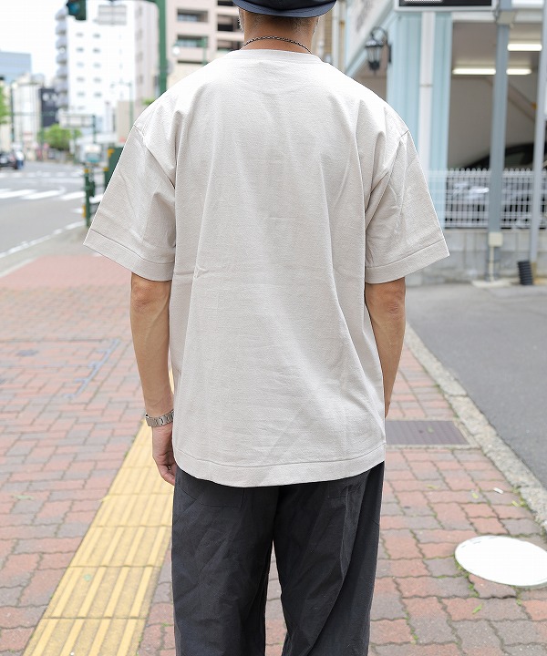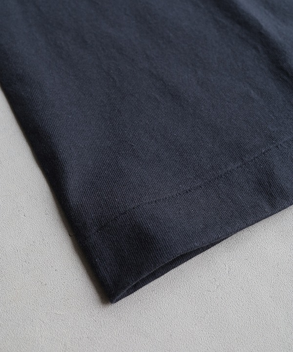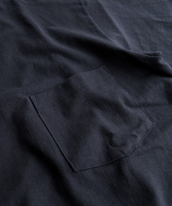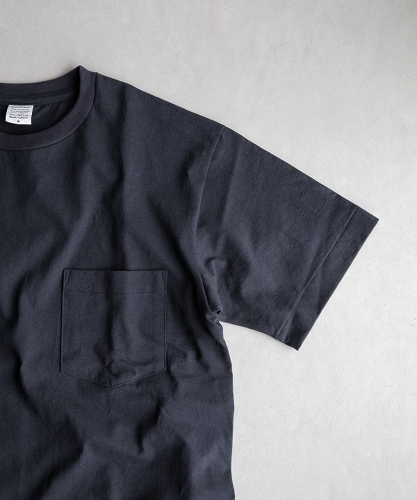 やや太番手にあたる14番の空紡糸を使ったオリジナル丸胴ボディーのポケットTシャツ。