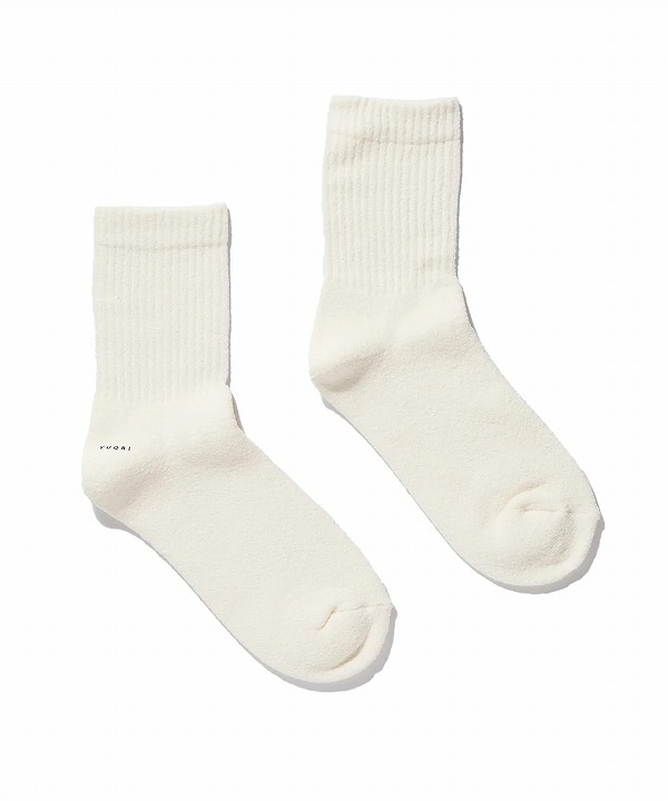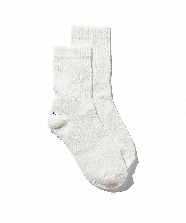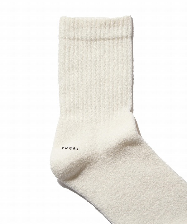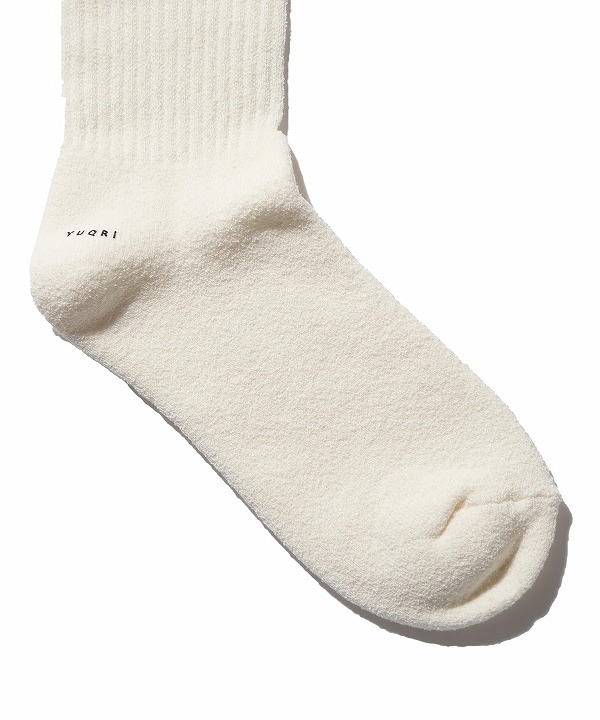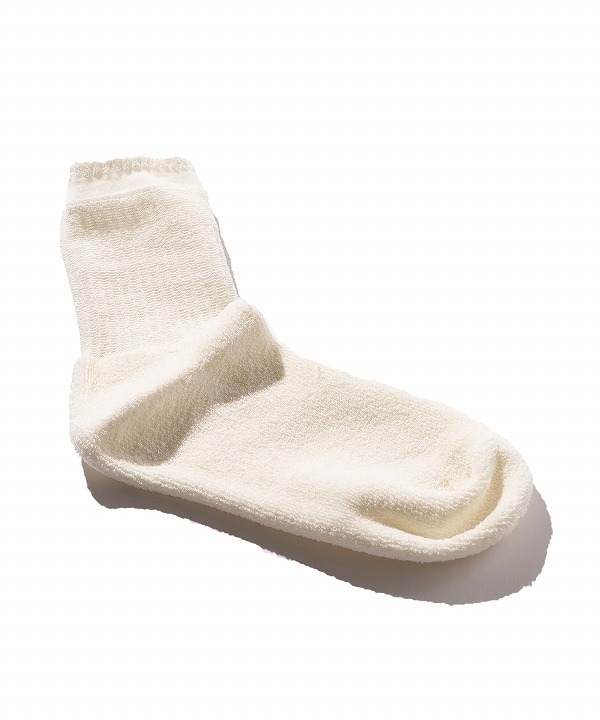 ループ状で膨らみのある糸を24Gの機械でパイル編みにすることで、さらにクッション性を感じる履き心地になっています。ふんわりした履き心地とサラッとしたタッチ感に新鮮さを感じていただけます。