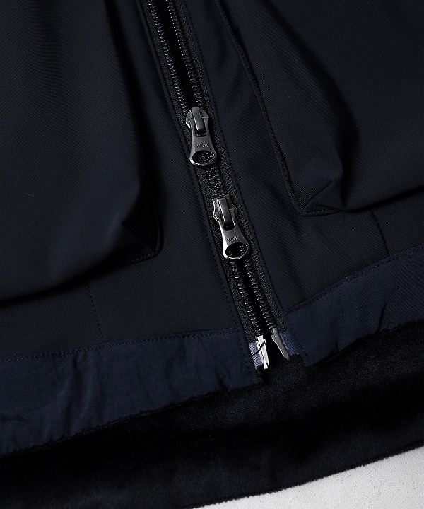袖口・裾口にはスピンドルを付属しておりシルエットの調整が可能。脇内側からアクセスできるインナーポケットを搭載し、背面内側にはストレージスペースを確保し小さく収納できるパッカブル仕様になっております。