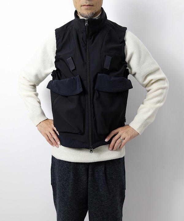 身幅にゆとりのあるシルエットでアウターベストとして活躍します。