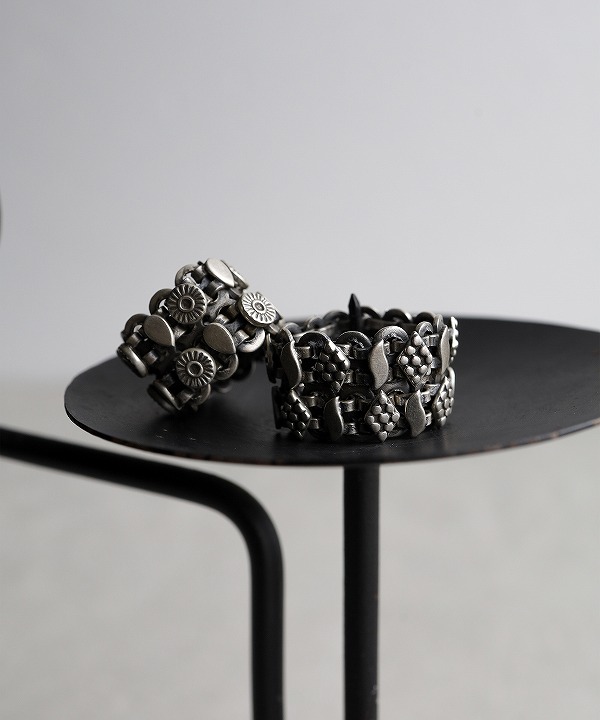 ネパールという国は、多様な民族集団や部族が存在します。 その部族の1つであるタルー族は、ネパールの低地部の一部であるタライ地域に主に居住している民族で、独自の民族衣装や伝統的な音楽、ダンスなどの文化的な要素を持っており、彼らの祭りやイベントではこれらの要素が豊かに表現されます。彼らがお祭りやお祝い事の際に身に着ける伝統的なメタル製の装飾品からインスピレーションを受け製作依頼をしたジュエリーが「THARU SILVER】です。