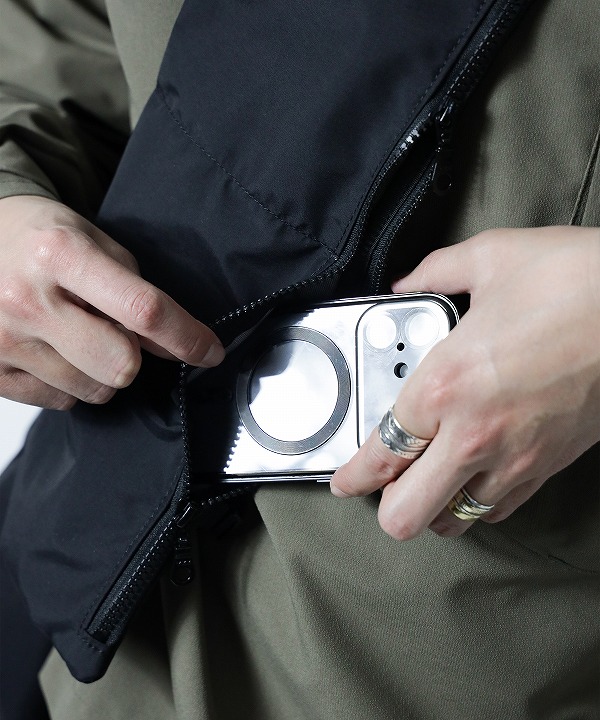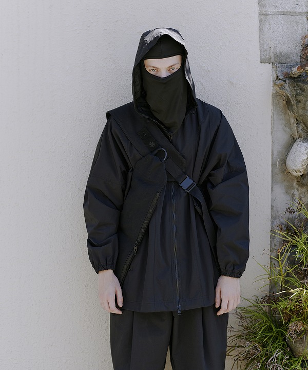 可動するショルダー部分にはファスナーを配置。