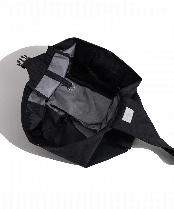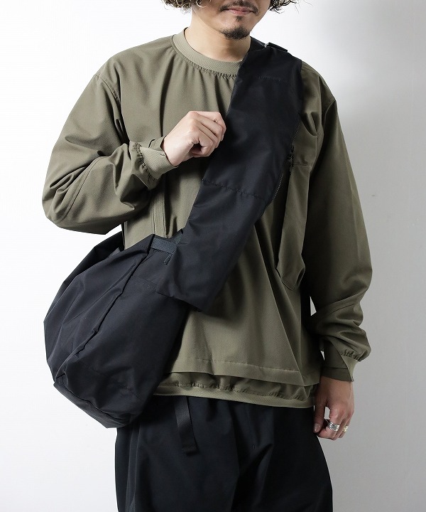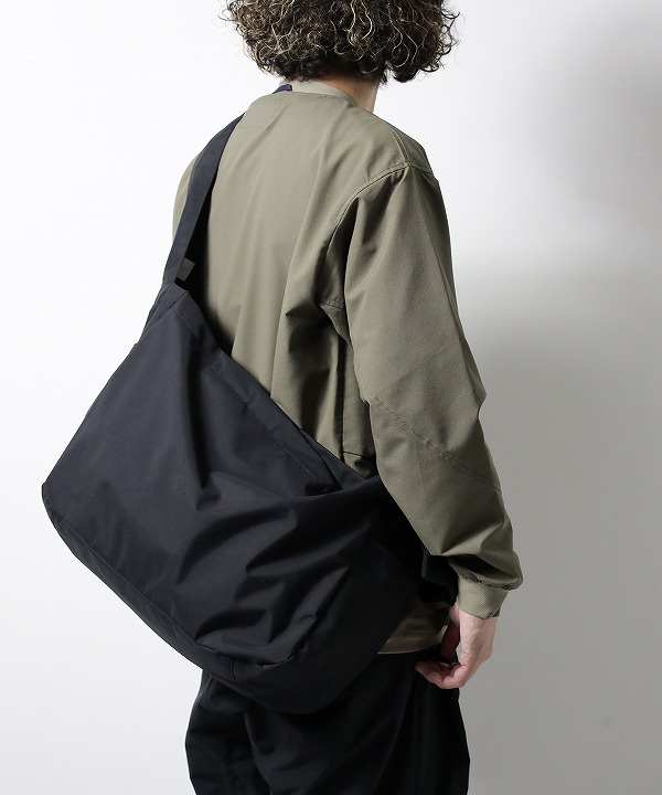 ポケットは合計5。内装前面には、鍵などを取り付けられるテープ付きDカンを備えています。ショルダーの長さはワンタッチで調節可能。動きの流れを止めません。