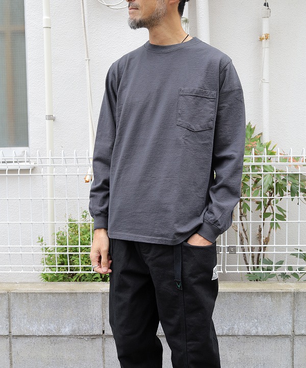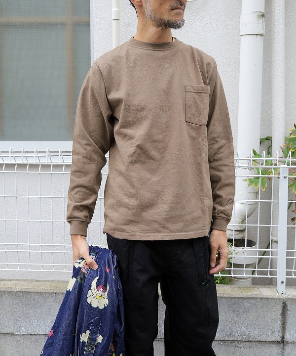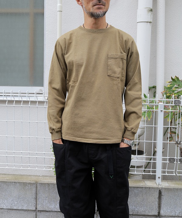 GOOD WEARはその頑丈さから、長年洋服好きから愛されてきました。ネックは細身のリブに胸ポケット付き。重厚感ある7.2ozヘビーウエイトボディーは無地Teeながら一枚で着た時も存在感があります。洗い、ガシガシ着て、洗い、またガシガシ着る、それでもへたりにくいタフさが最大の魅力ではないでしょうか。春はロンT+ショーツのコーディネイトもいいですね。
