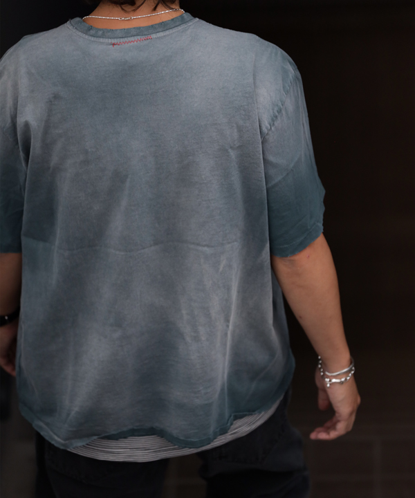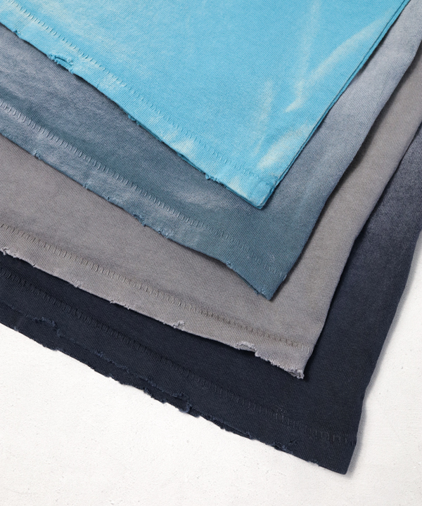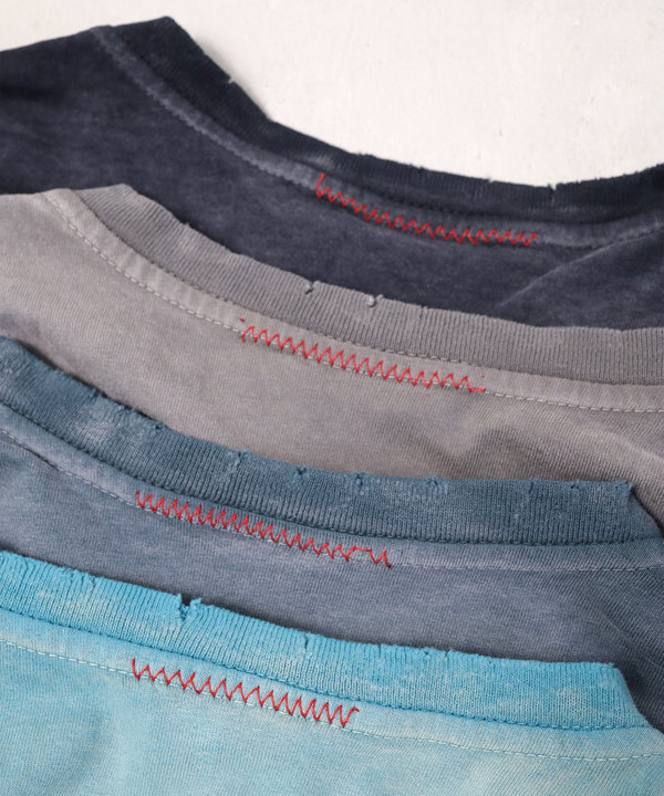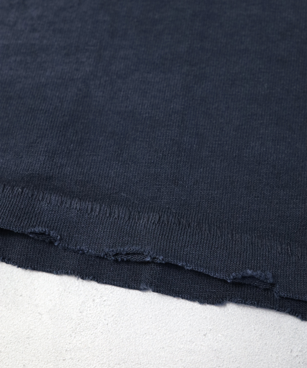 自然な日焼けを再現した色落ち感と、長年着古したようなネック+袖口+裾周りのダメージ加工を施しており素晴らしい雰囲気に仕上げてあります。