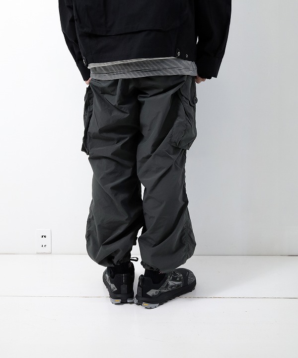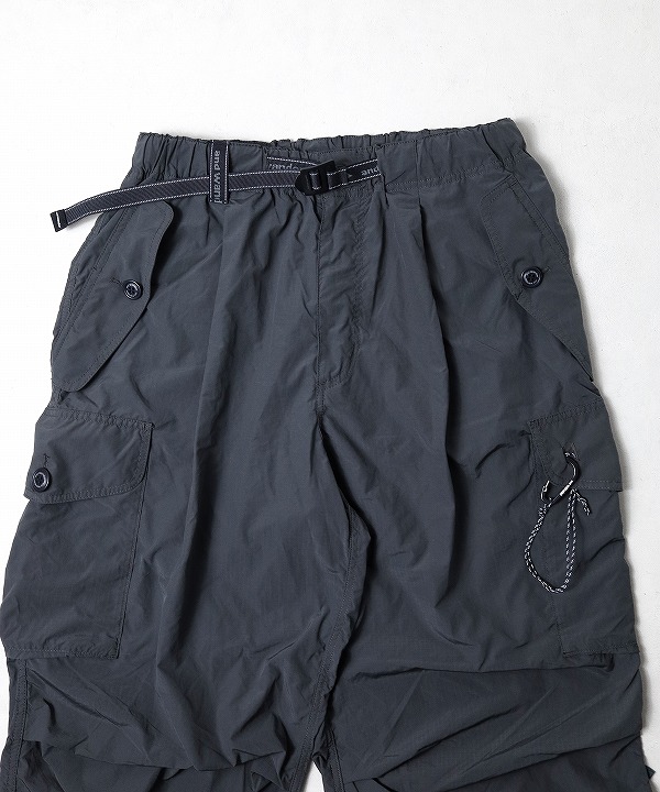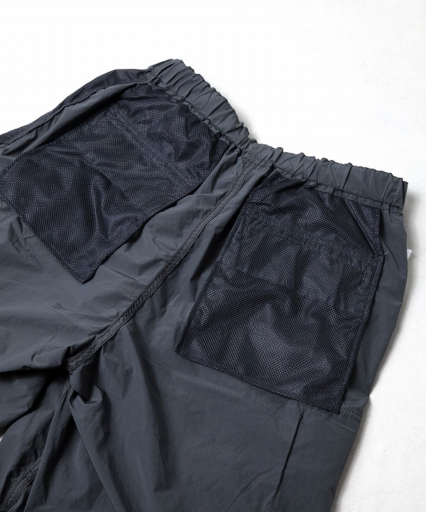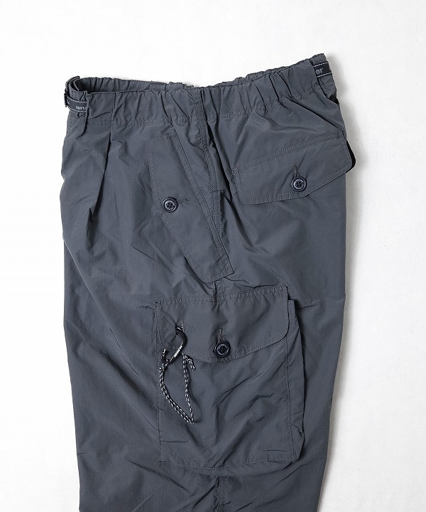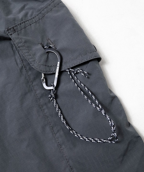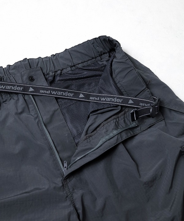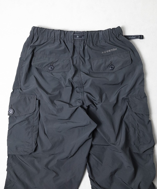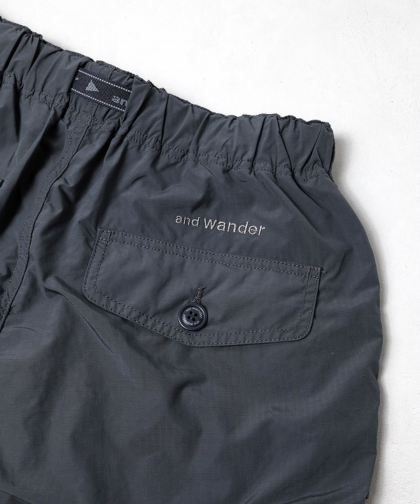 割繊糸を使用し独特のハリ感と発色性のある撥水のリップストップ素材を使用しており「軽さ、丈夫さ、機能性」を持つand wanderらしく街でもアウトドアでも快適なカーゴパンツなんです。