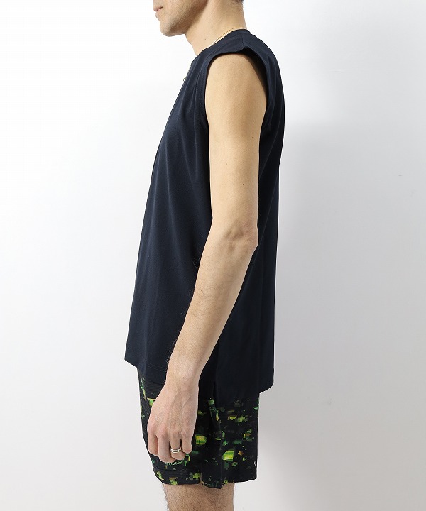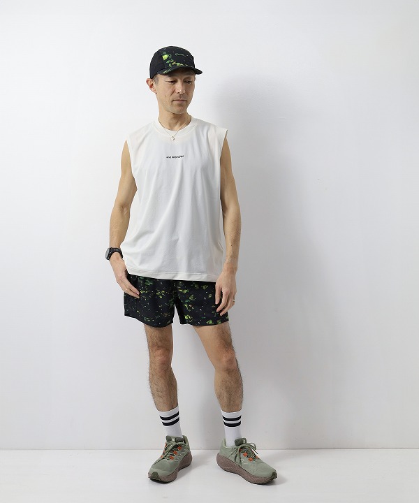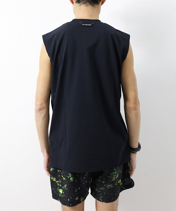 一般的なノースリーブと比べ幅に程よくゆとりを持たせたボックスシルエット。段差を付けた後ろ見頃やスタイリッシュなロゴデザインも相まって一枚で様になります。