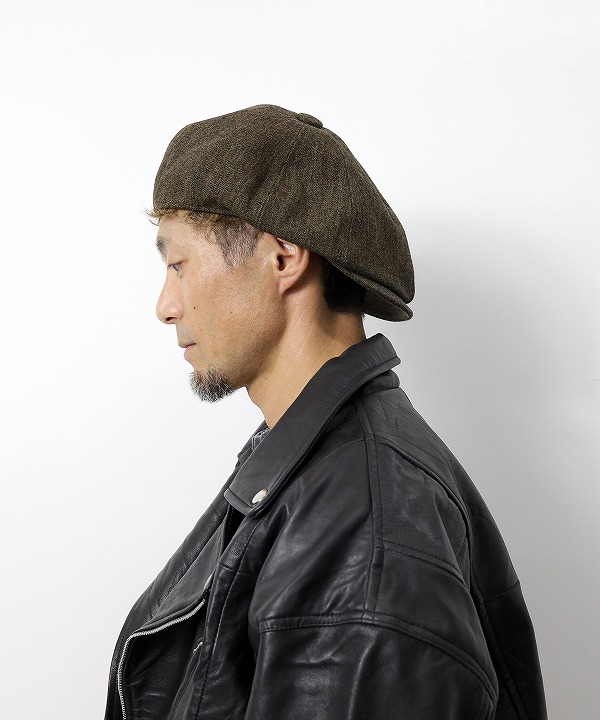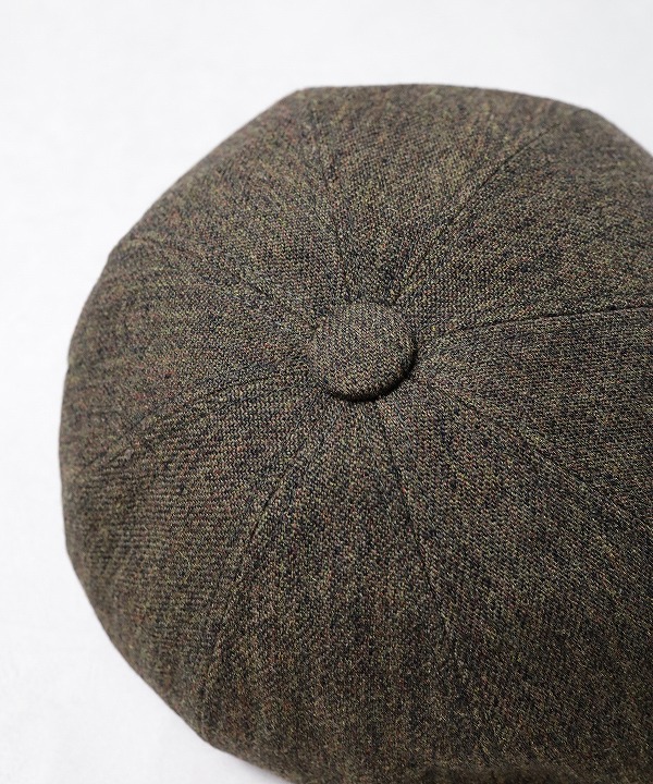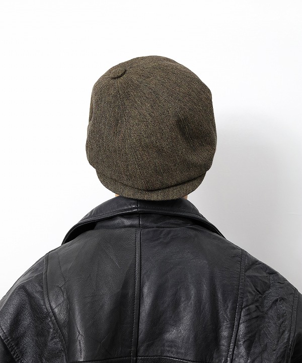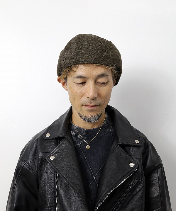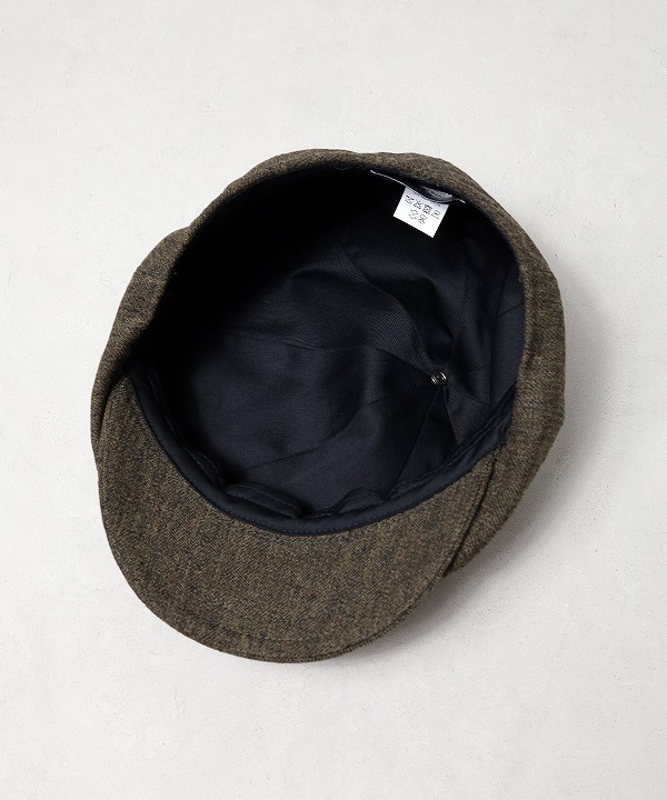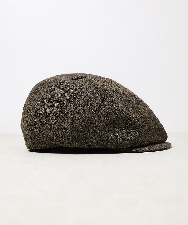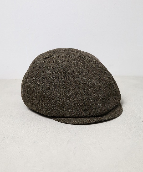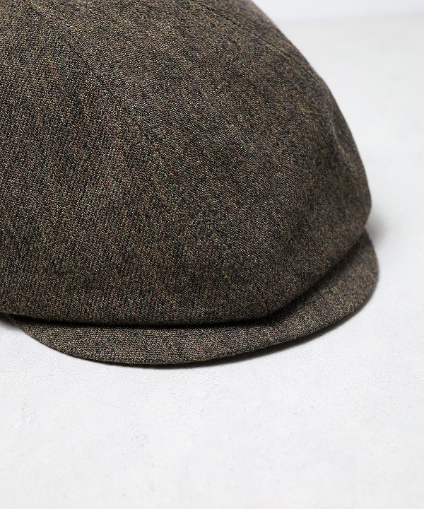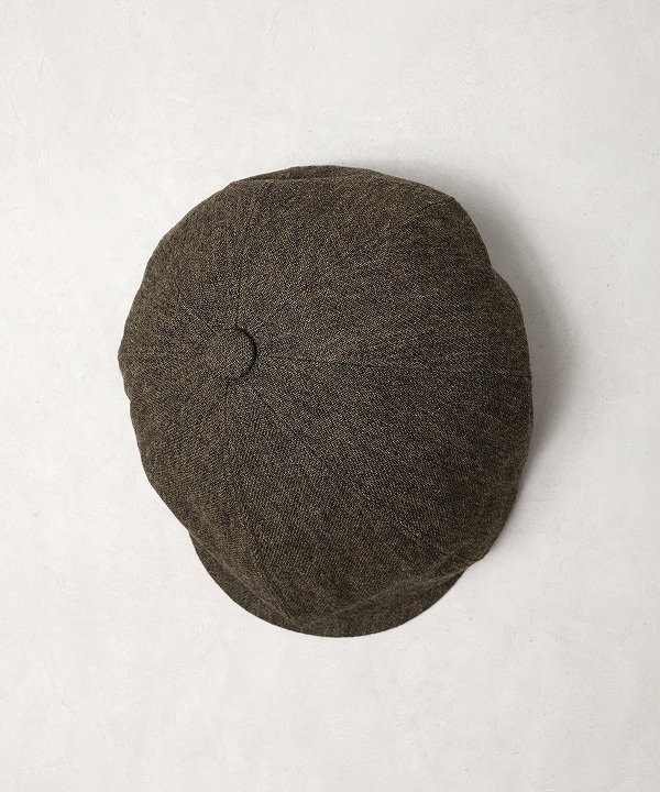 ハンチングキャスケットのクラウンにパターン上で歪みの表現を加える事で、被り易いシルエットでありながら、他には無い独自のデザインとなっています。