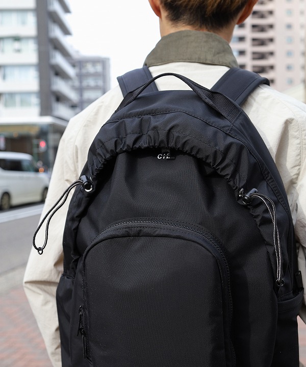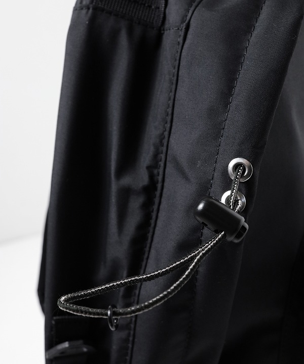 ドローコード部分はミリタリーテントのギャザーディテールがモチーフ絞り具合を調節できるため見た目の変化もお楽しみいただけます。