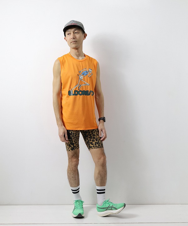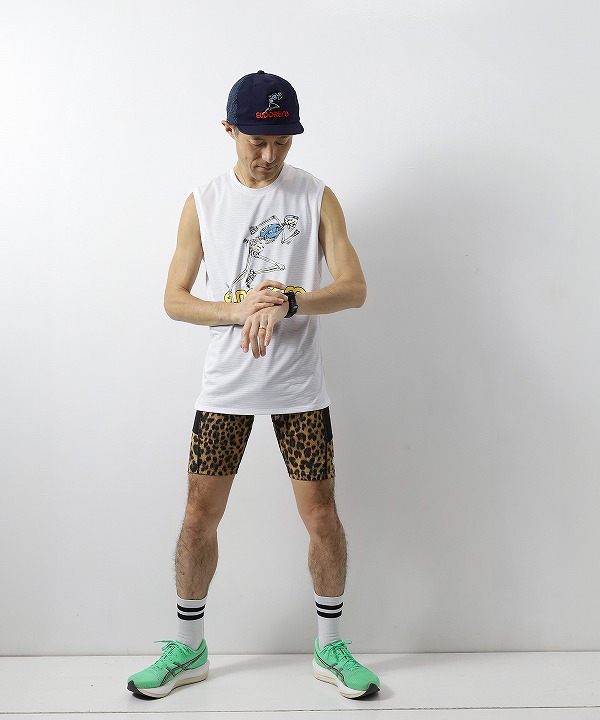 ランナーの一瞬の動きを切り取り、ブランドが得意とするストリートファッションのエッセンスを加えてランニングウェアのデザインへ落とし込んだ「ボーンマン」シリーズのランニングシャツです。