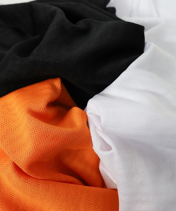 今回は吸水速乾性を持ちながらも風合いの良い、ポリエステル製のメッシュ素材を採用。