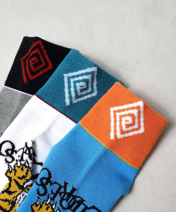 ウェアのデザインに使用した様々なモチーフを、細やかなジャカード(織り柄)で表現した靴下です。