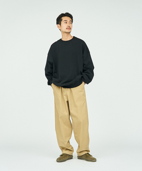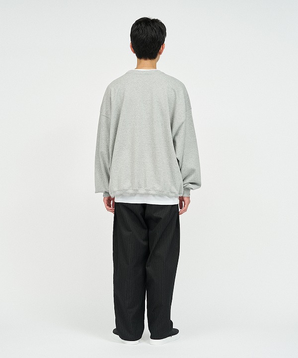 長いシーズンで活用する程良い厚みのクルーネックスウェットです。