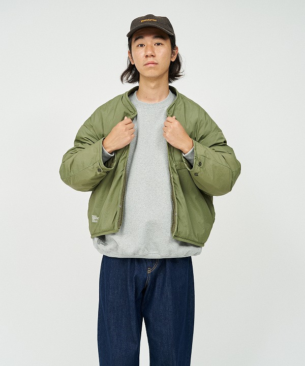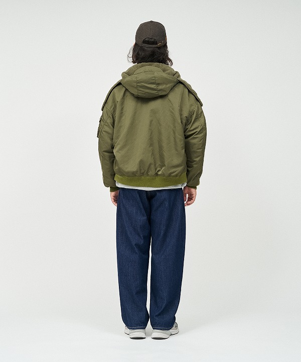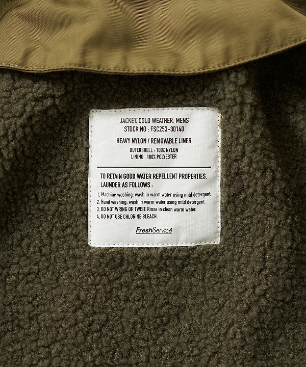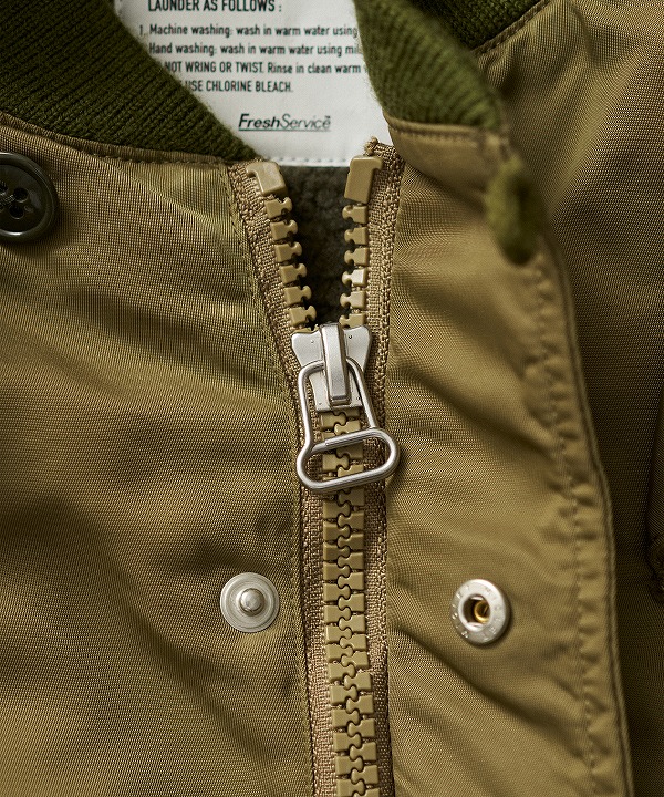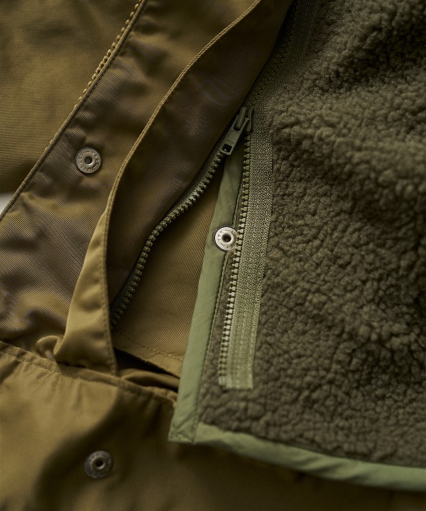 表地は耐久性のあるフライトナイロンツイル、ライニングにはボアフリースを採用しており、ライニング単体でも着用可能。