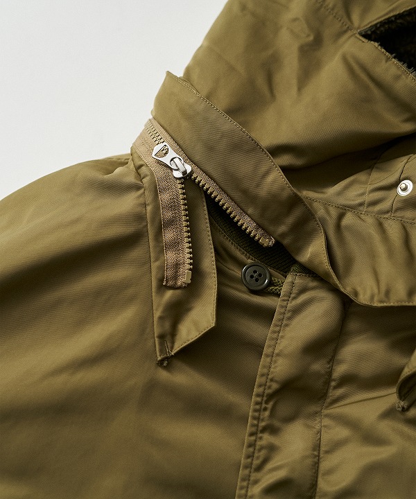 ミリタリーウェアとしてのタフな生地に長く使い込まれた風合いを表現した加工を加え、当時のディティールを再現しています。
