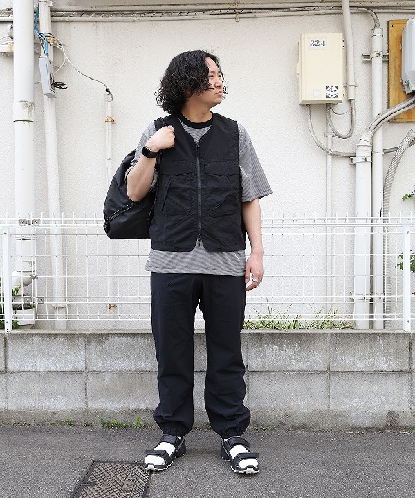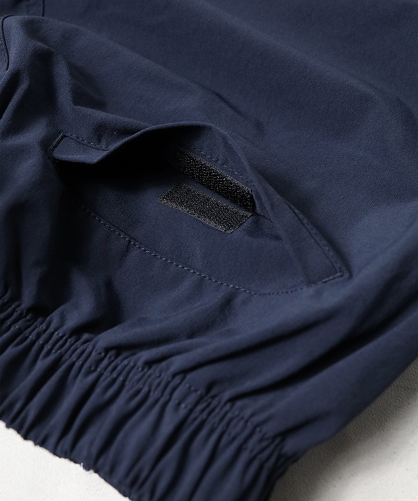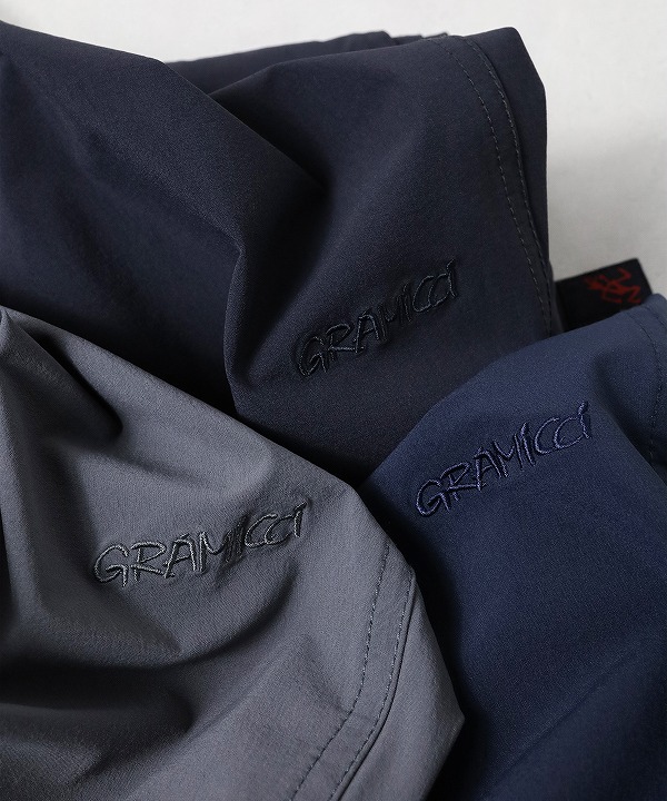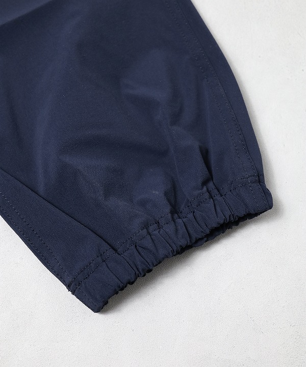 軽量でタフなナイロン素材でドライタッチと製品洗いを施したワッシャー感が特徴。また、右身頃にロゴ刺繍が入っています。