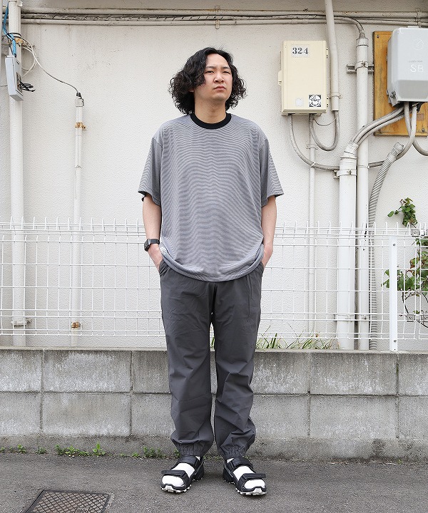 ややゆとりのあるシルエットで、裾口がゴム仕様のトラックパンツ。