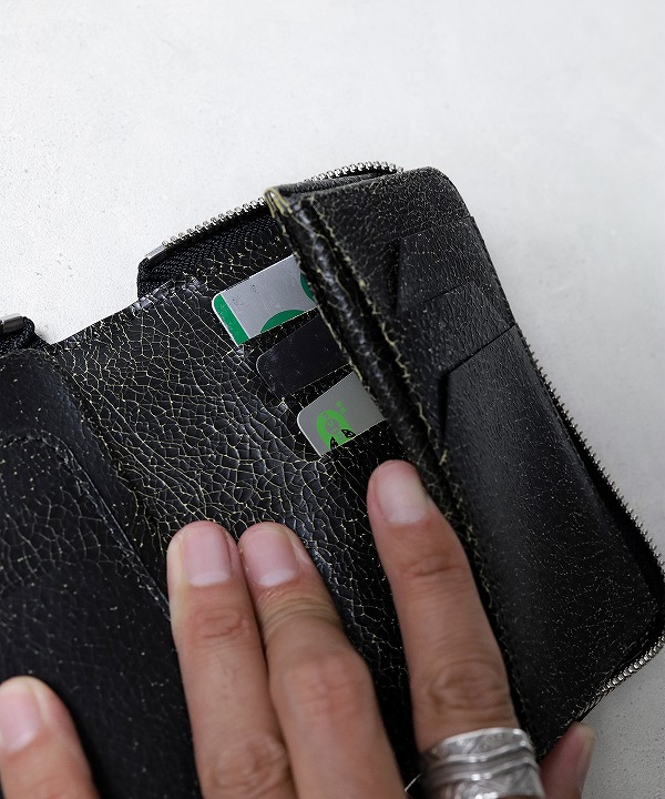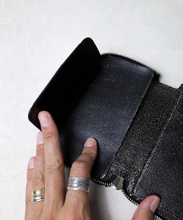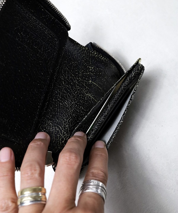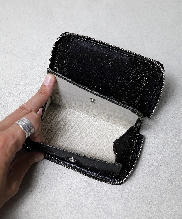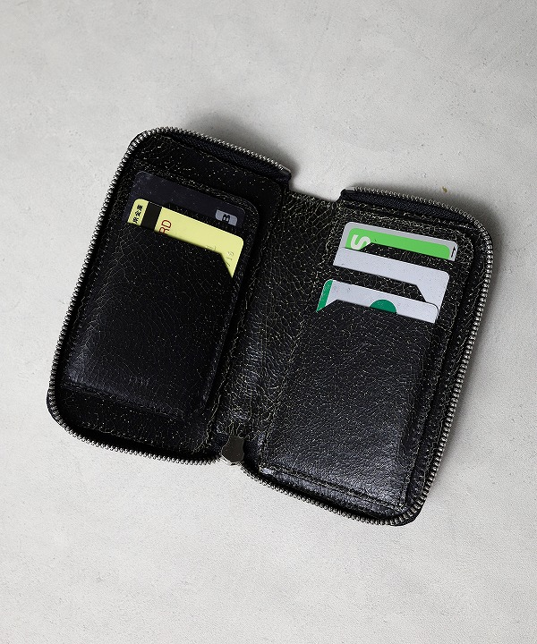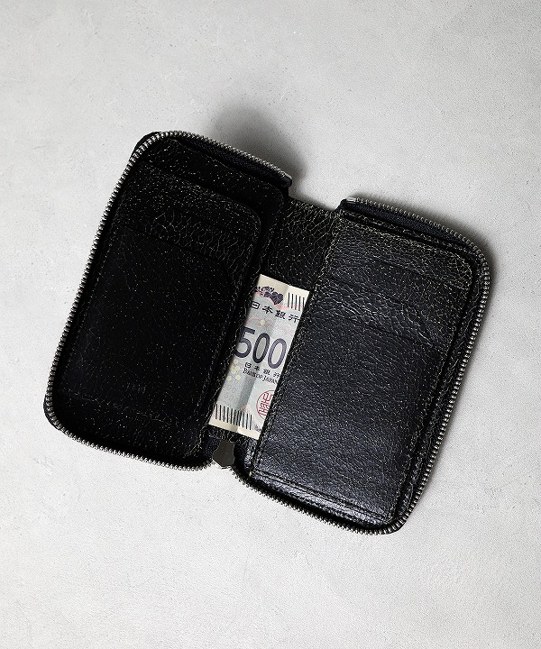 定番で展開しているスマートフォンサイズのミディアム財布、CRISTY SMART MID WLT(クリスティスマートミッドウォレット)。二つ折りでラウンドファスナー仕様となっており、見た目に反して驚くほどの収納力を誇ります。