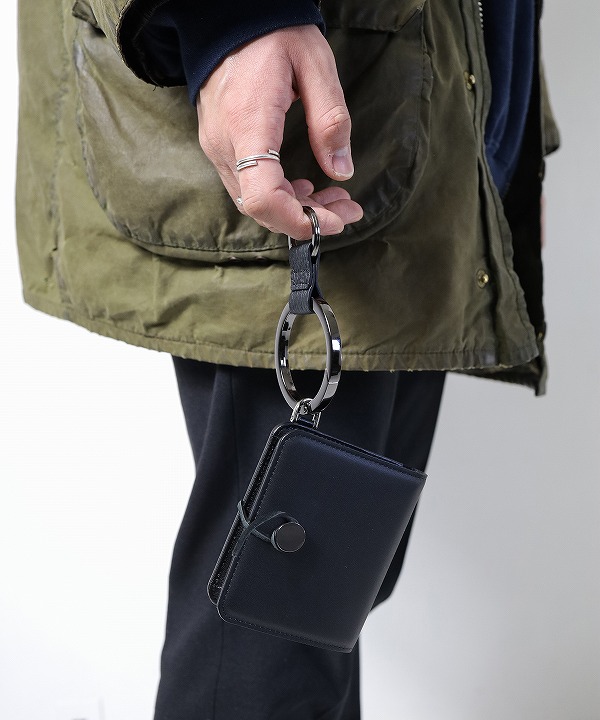 さらにウォレット下部にはDカンを装備し、ウォレットチェーンやチャームを自由に取り付け可能。アクセサリー感覚でアレンジを楽しめる仕様も魅力です。