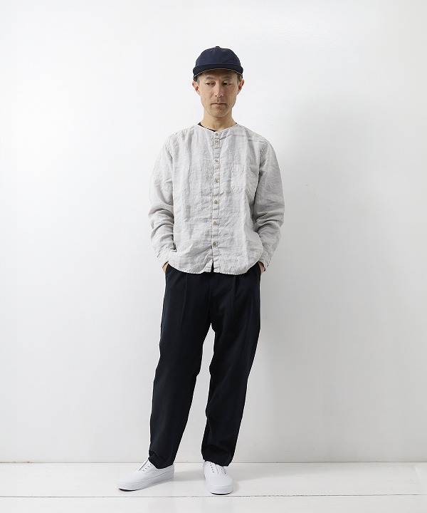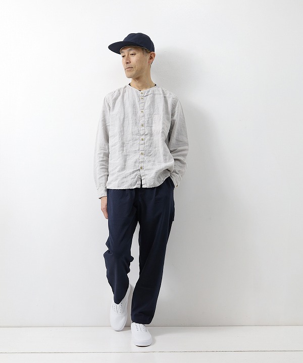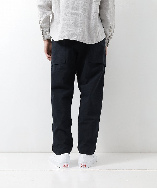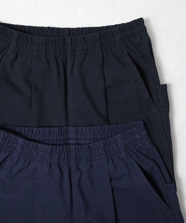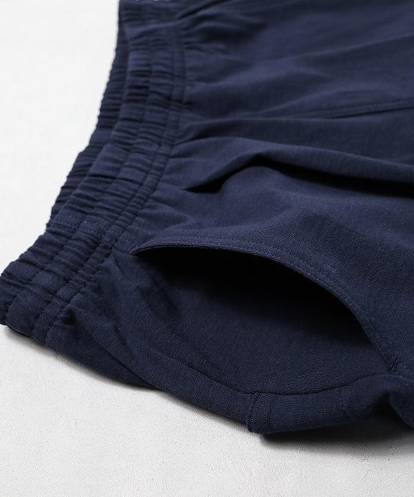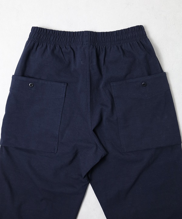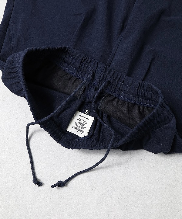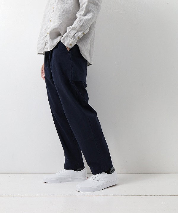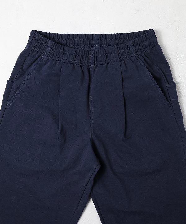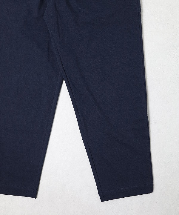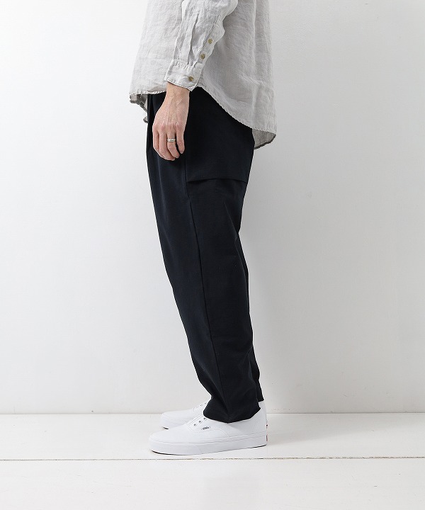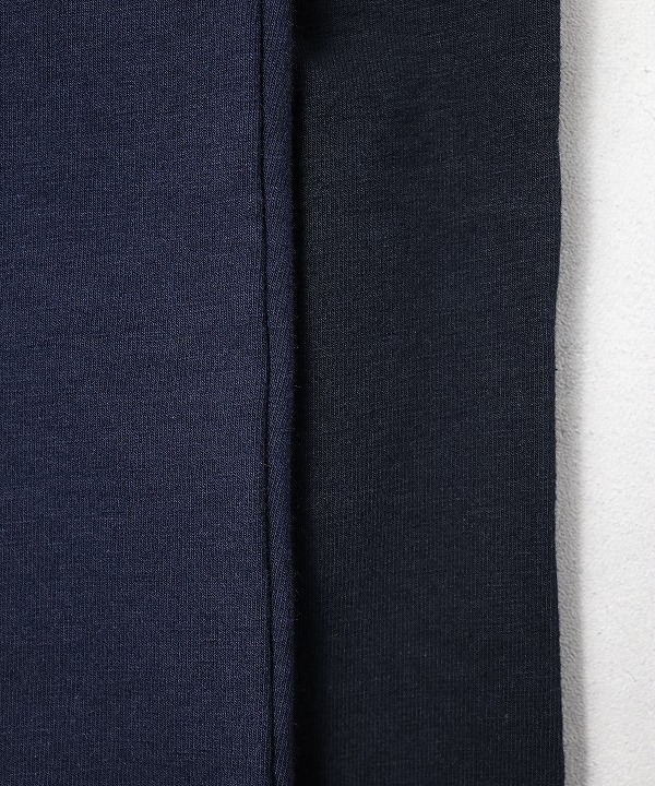 設計はバックネップアンプスパンツと一緒ですが素材の特性によるカットソー特有の膨らみとドレープ感が立体感のある表情を作ります。